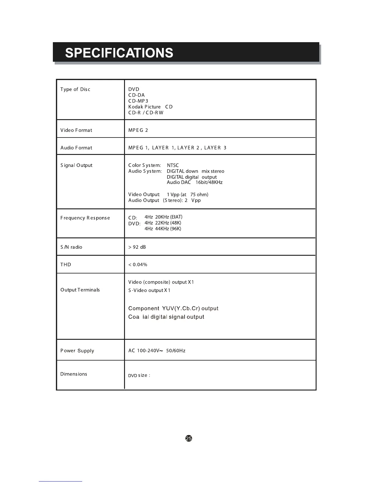 Curtis DVD1041 - Specifications