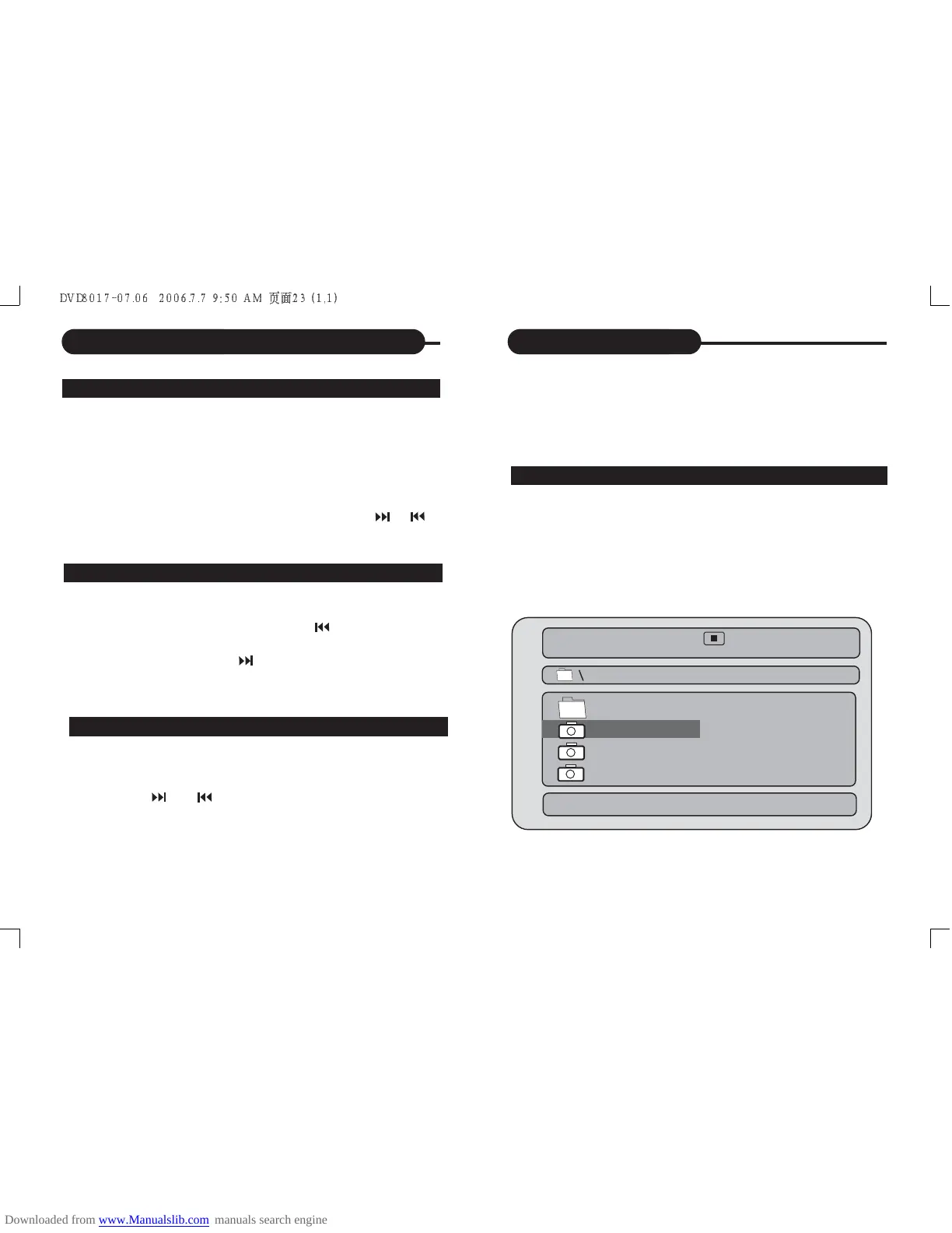 ENTER/PLAY to view folder contents (shown in right
