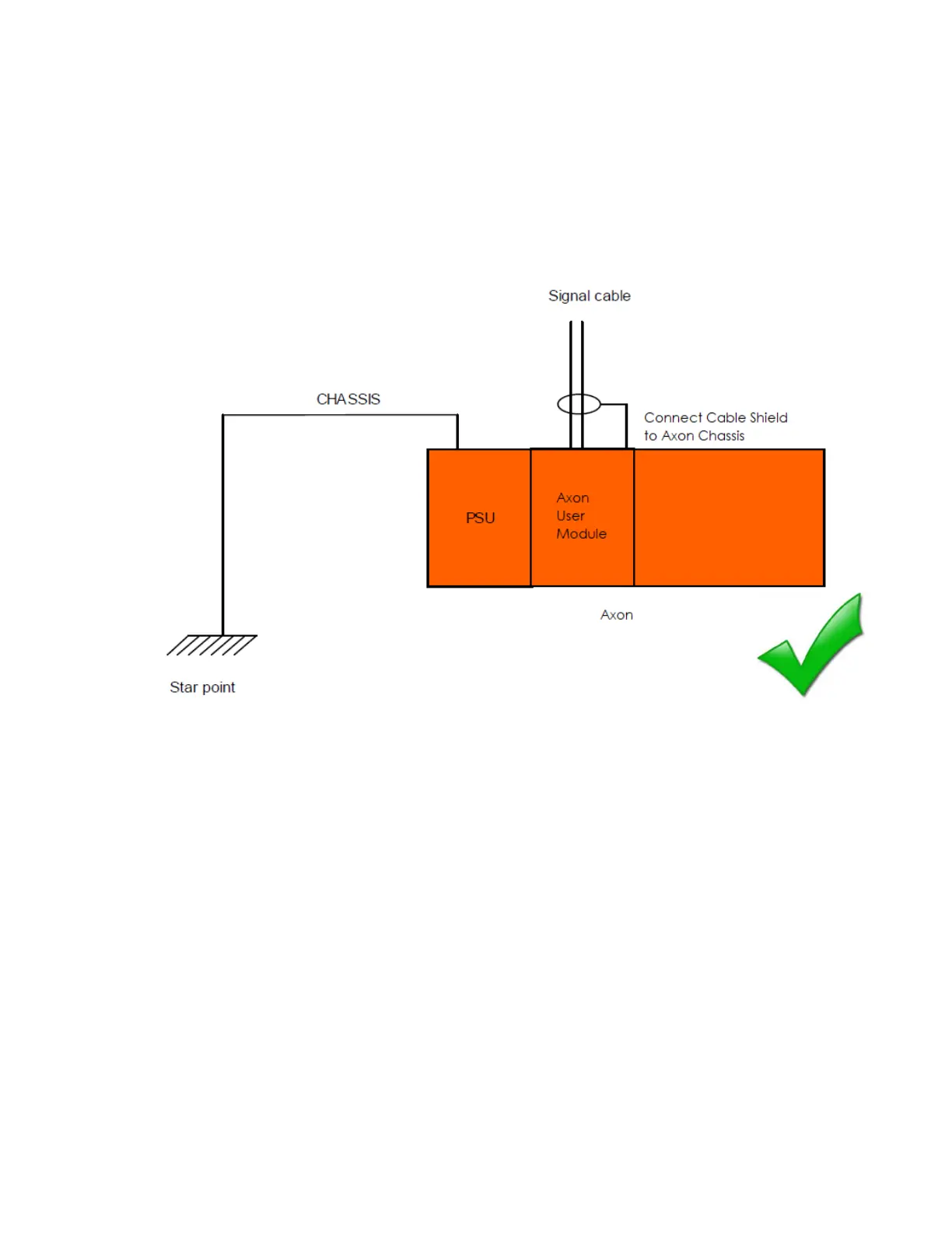 Signal cable shields should ideally only terminate at the AXN end. Bus cables may terminate at both ends as