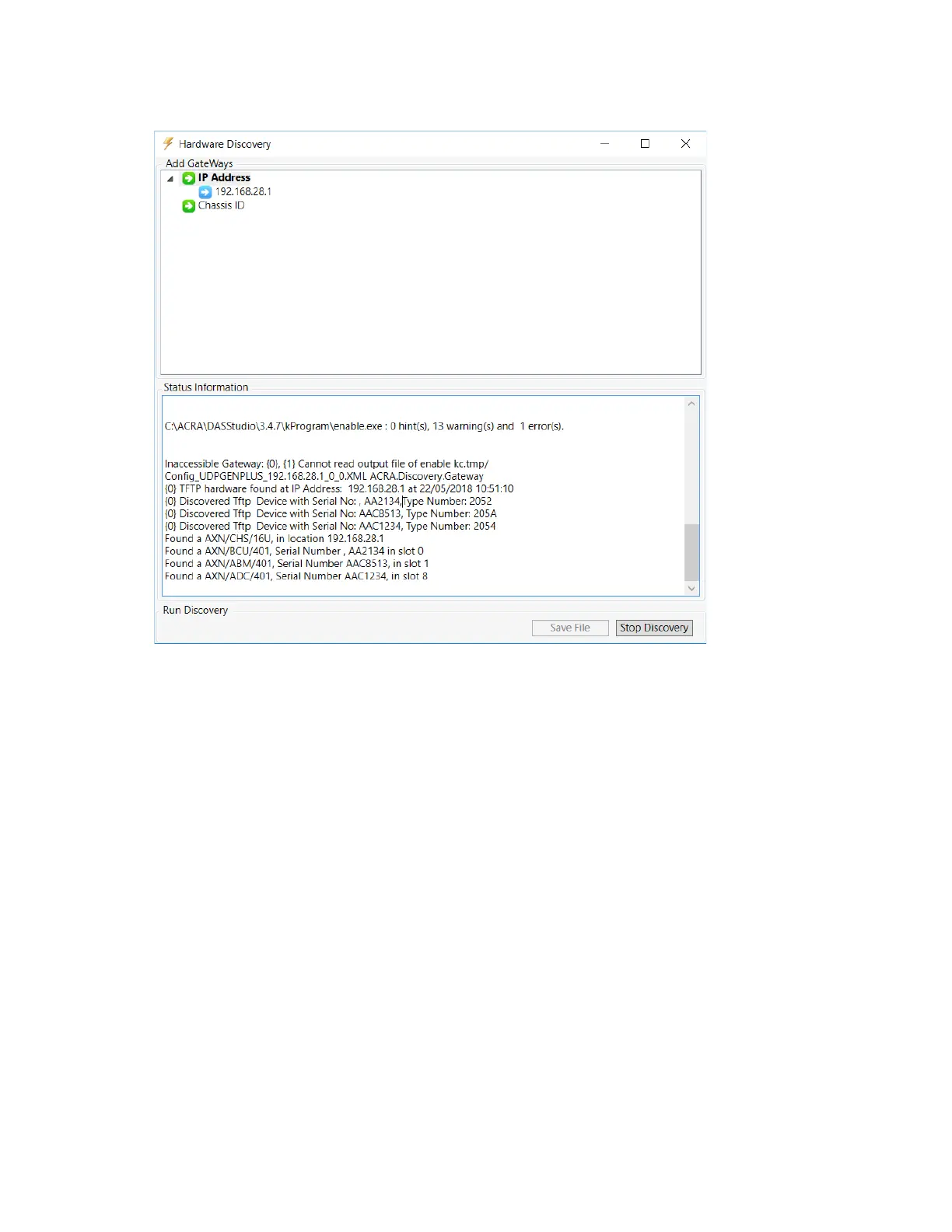 6. Click OK to return to the Hardware Discovery window.