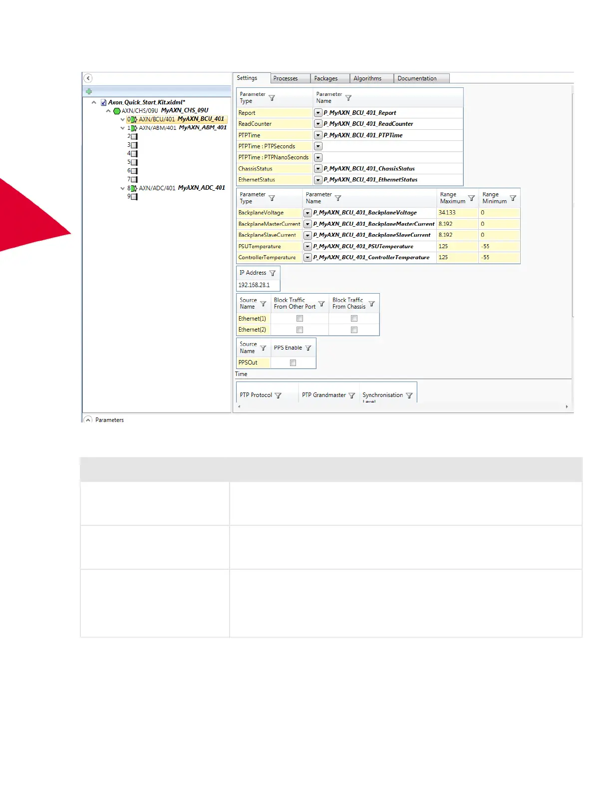 The following table describes the parameters on the AXN/BCU/40x Settings tab.