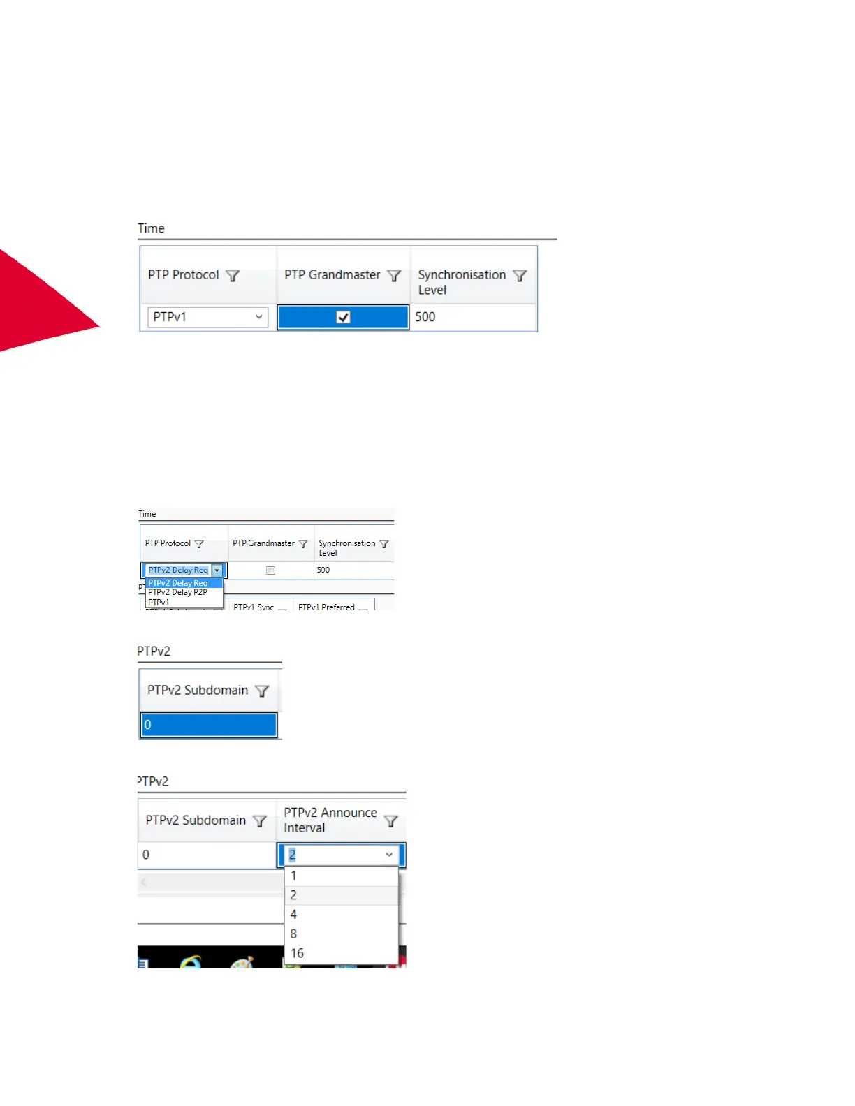 3. Set the PTPv2 Announce Interval to match the announce interval of the PTPv2 Grandmaster.
