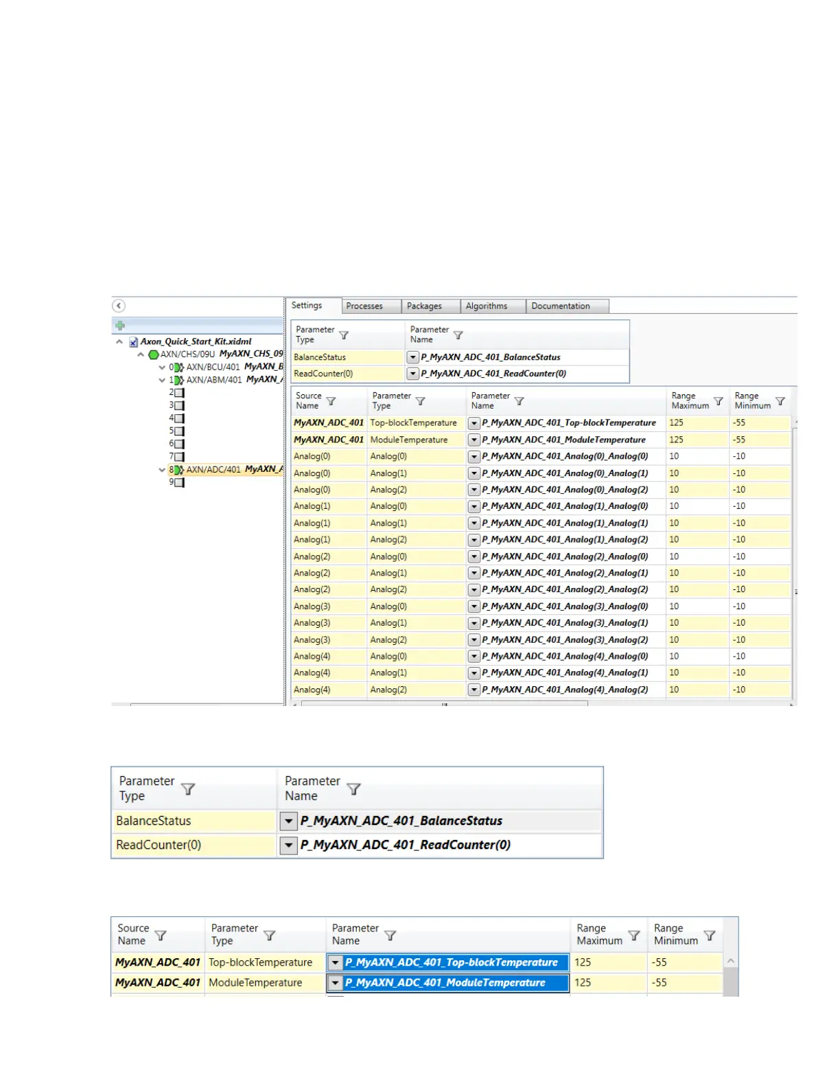 To view settings for the AXN/ADC/401, select the module in the Navigator and then click the Settings tab.