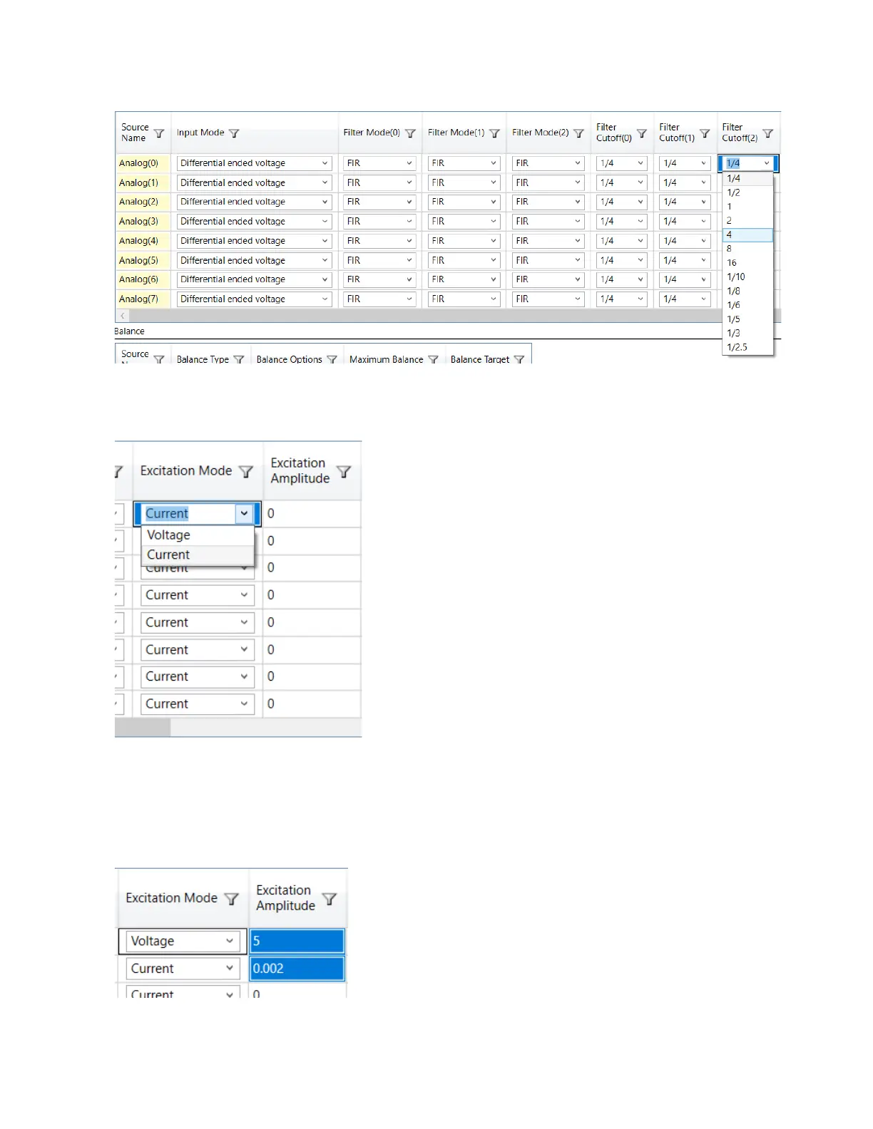 Excitation Mode can be independently set for each channel to either Current or Voltage excitation.