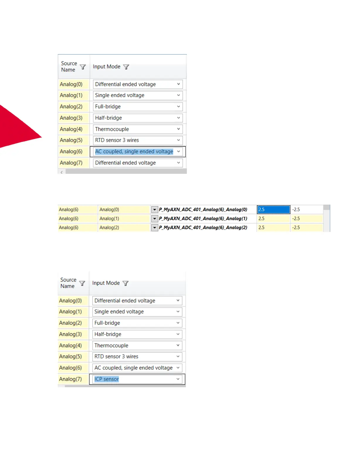 Configuring the AXN/ADC/401 for ICP inputs