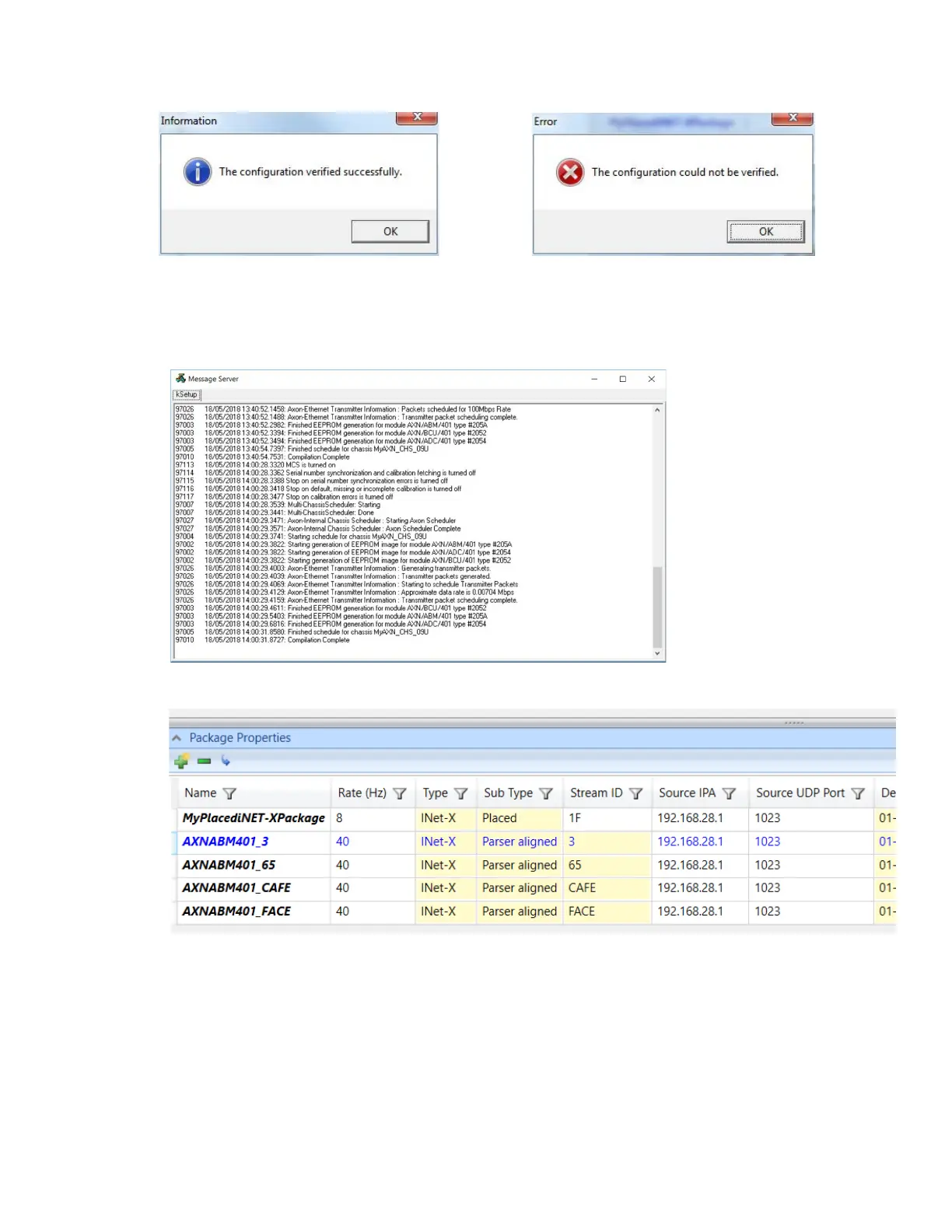 Packetizer packets are automatically generated by the software during verification. The AXN/BCU/40x