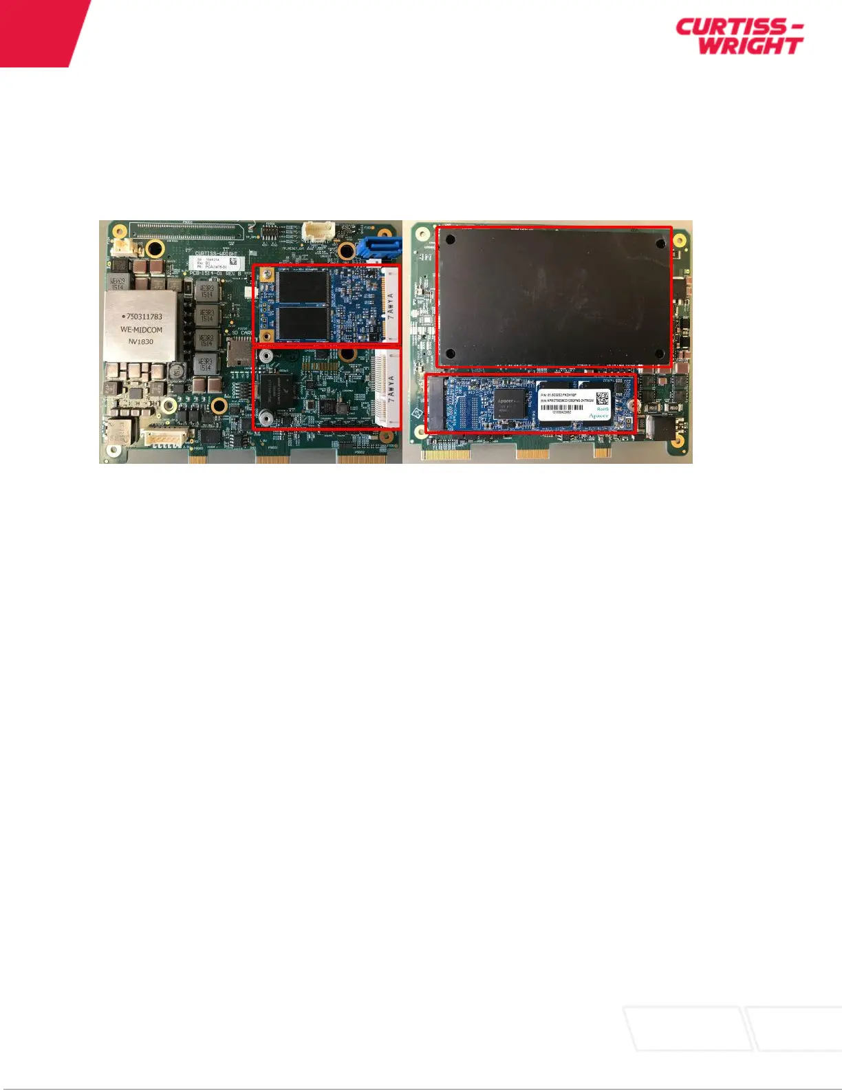 (bottom card, left image). SOM (TX2i, right image) and M.2 card, (right image)