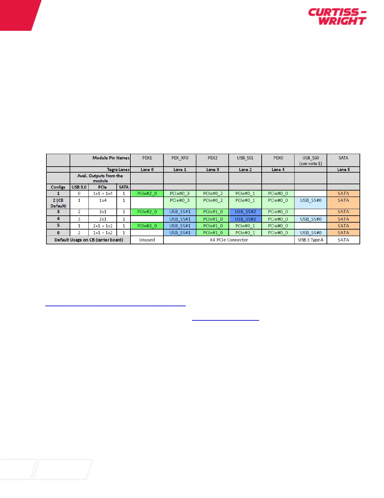 The Jetson TX2i module has a number of possible PCIe/USB 3.0 configurations, see Figure 11. These