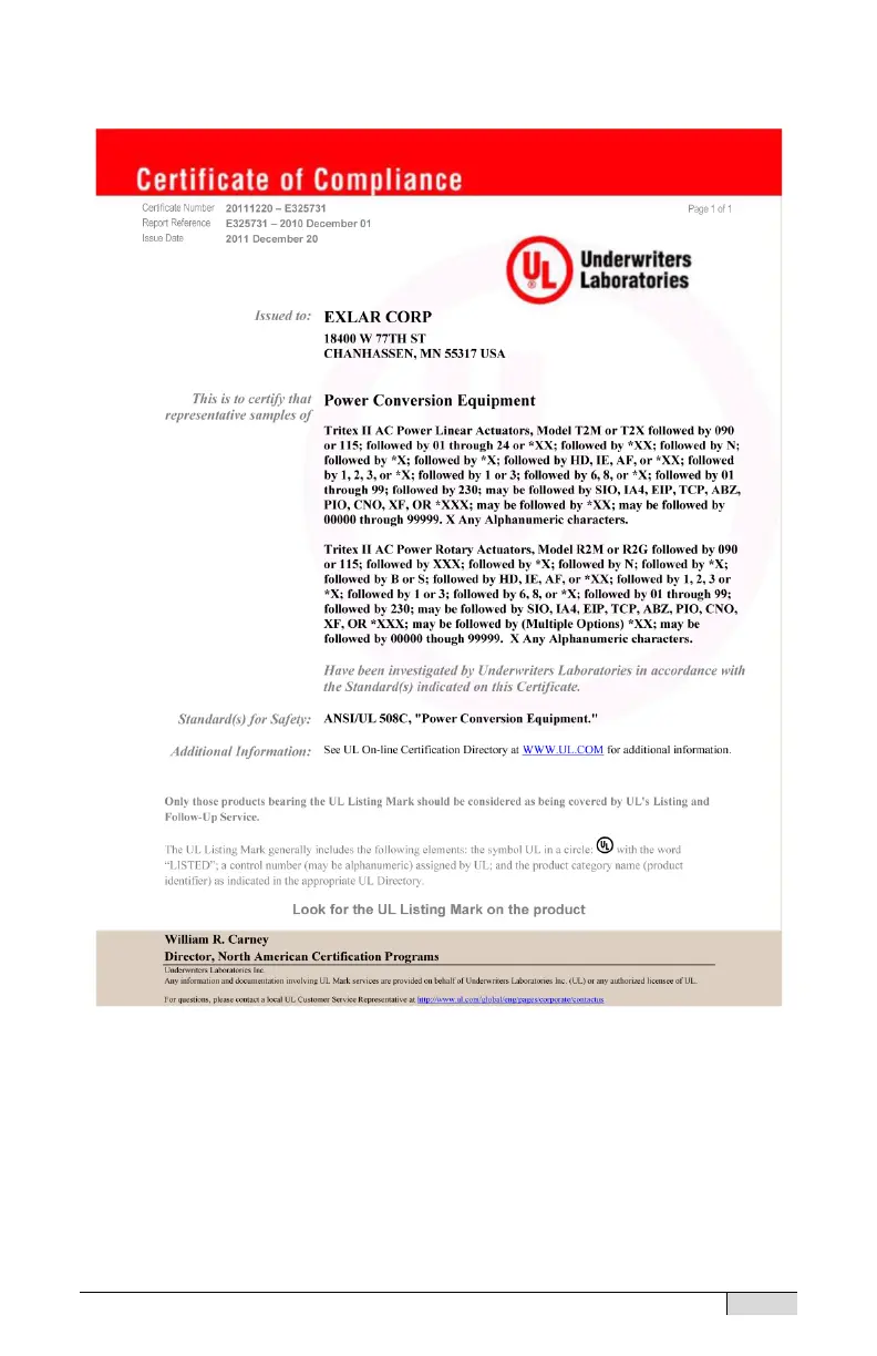 Curtiss-Wright EXLAR Tritex II AC - UL Certificate of Compliance