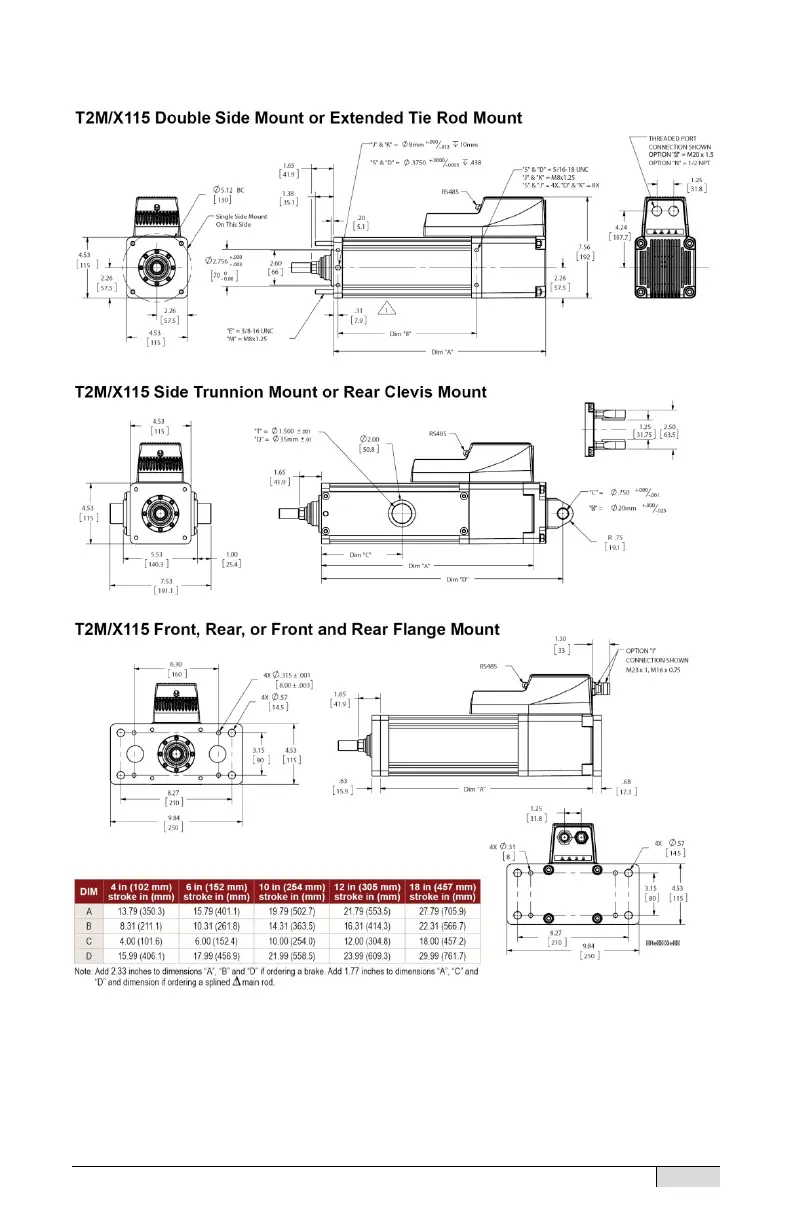 Curtiss-Wright EXLAR Tritex II AC - T2 M;X115 Actuator Dimensions