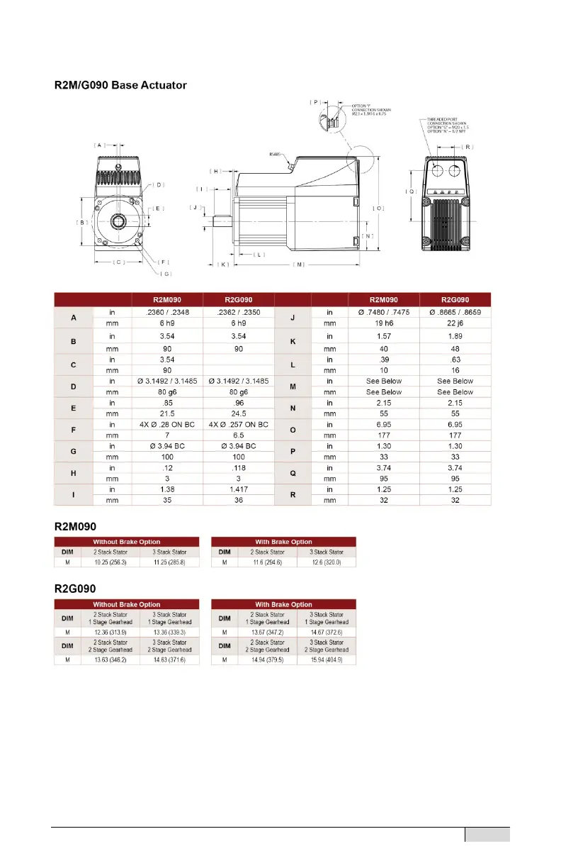 Curtiss-Wright EXLAR Tritex II AC - R2 M090 and R2 G090 Motor;Gearmotor Dimensions