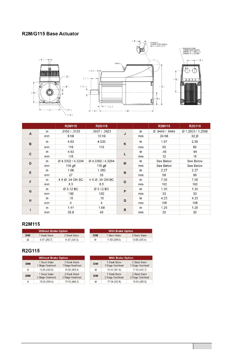 Curtiss-Wright EXLAR Tritex II AC - R2 M115 and R2 G115 Motor;Gearmotor Dimensions