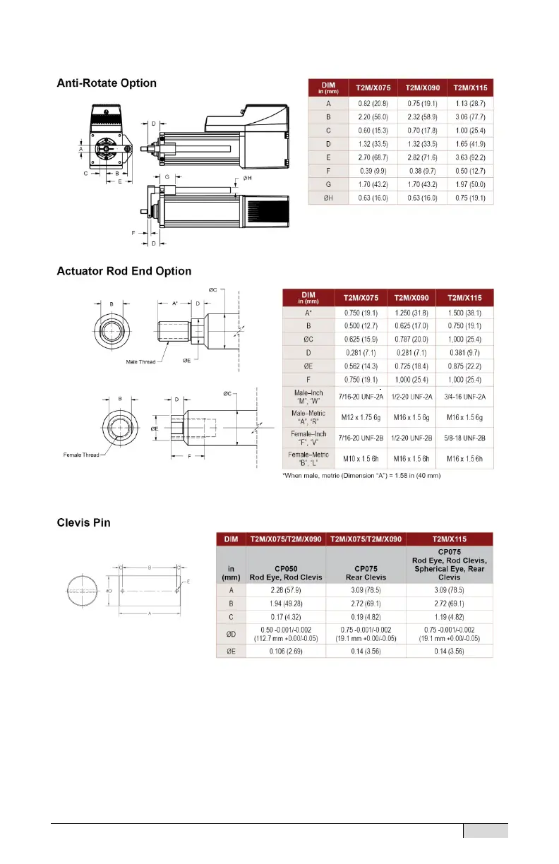 Curtiss-Wright EXLAR Tritex II AC - Options and Rod End Attachment Dimensions