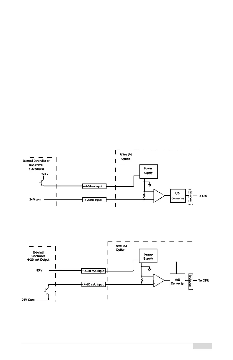 The IA4 option board provides one 4-20 mA isolated analog input and
