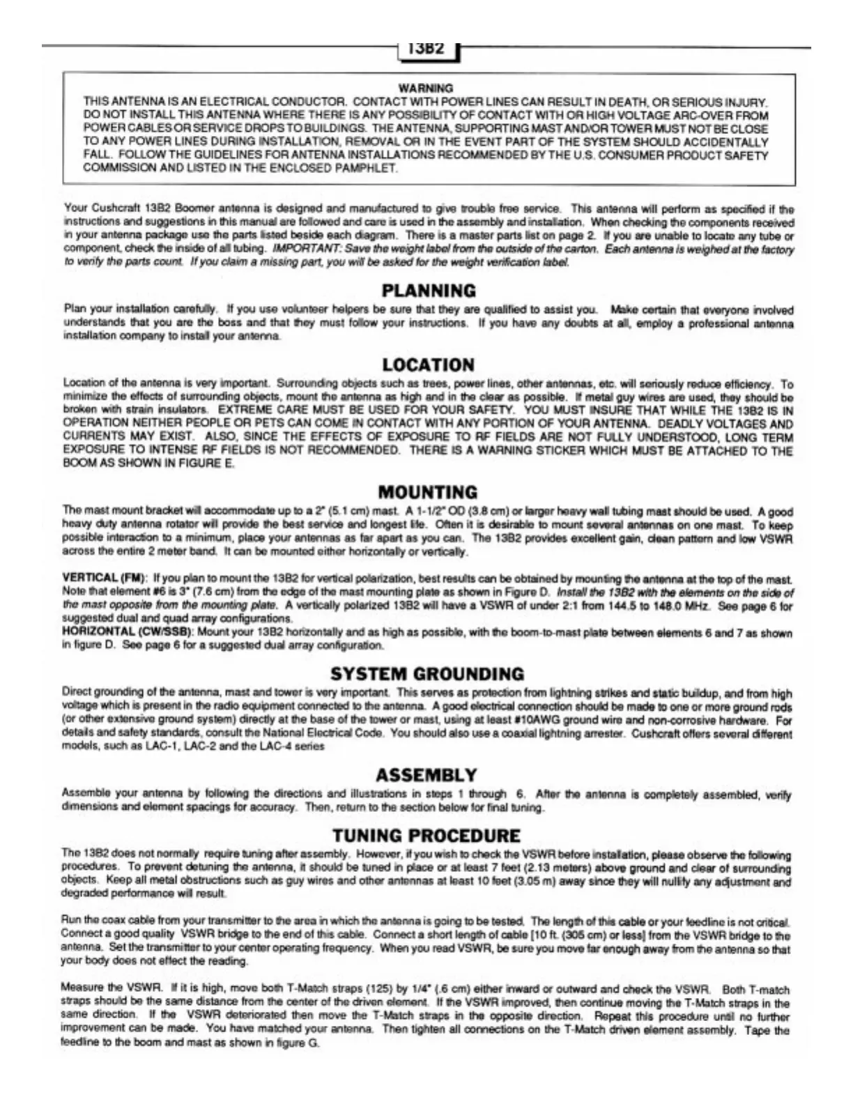 CUSHCRAFT 13B2 - General Safety Warnings; Installation Planning; Antenna Location Considerations; Mast Mounting Options