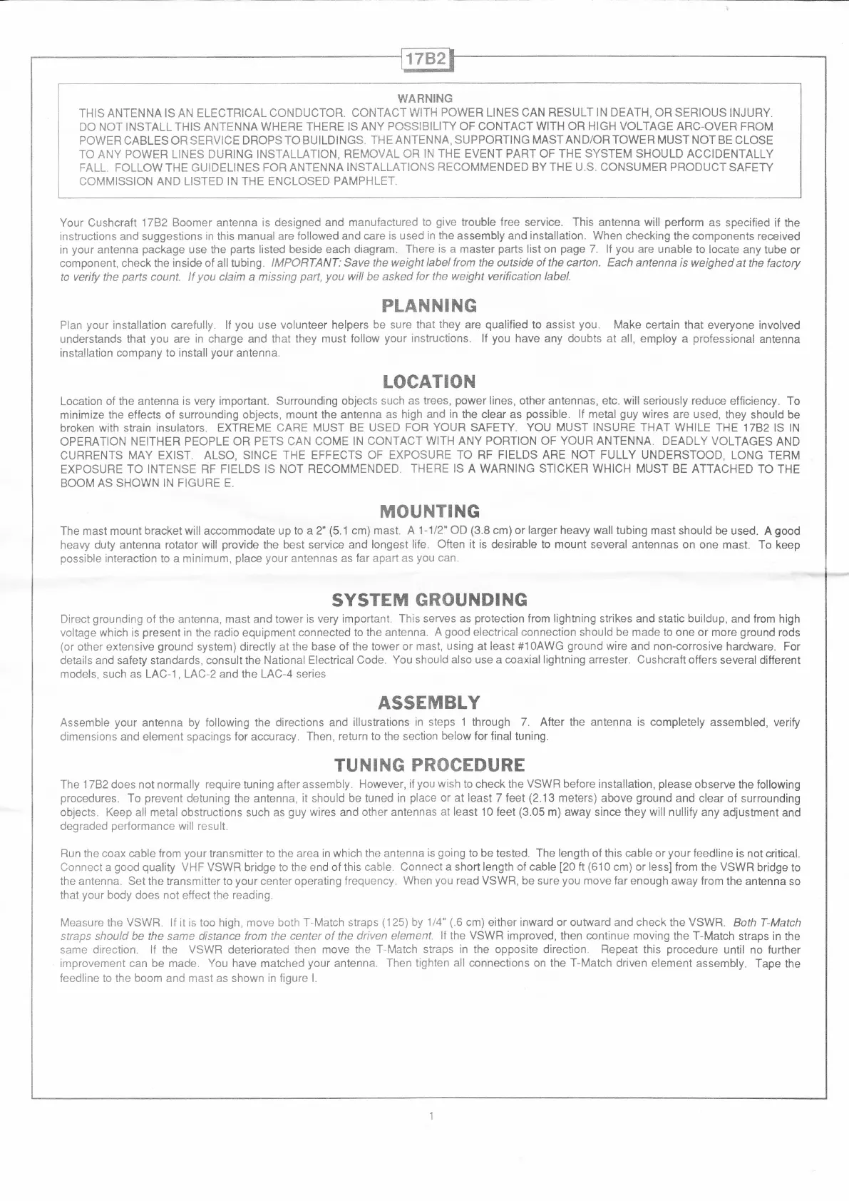 Your Cushcralt l7B2 Boomer antenna is designed and manufactured