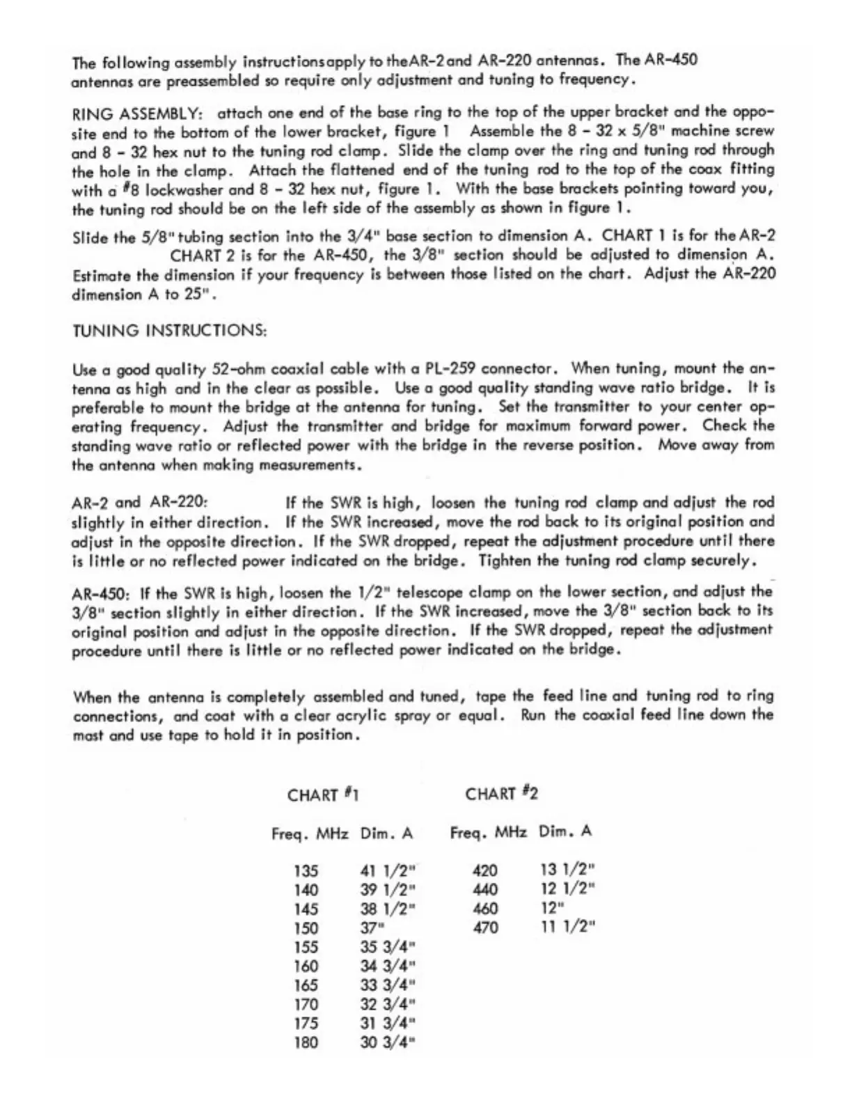 CUSHCRAFT AR-2 - Assembly and Tuning Instructions; Ring Assembly; Tuning Instructions; AR-2 and AR-220 Tuning Procedure