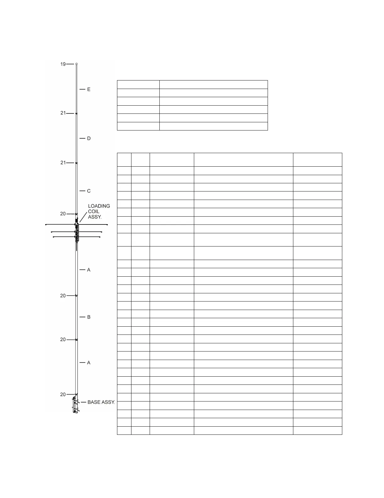 HV-4E Antenna List by Individual Parts