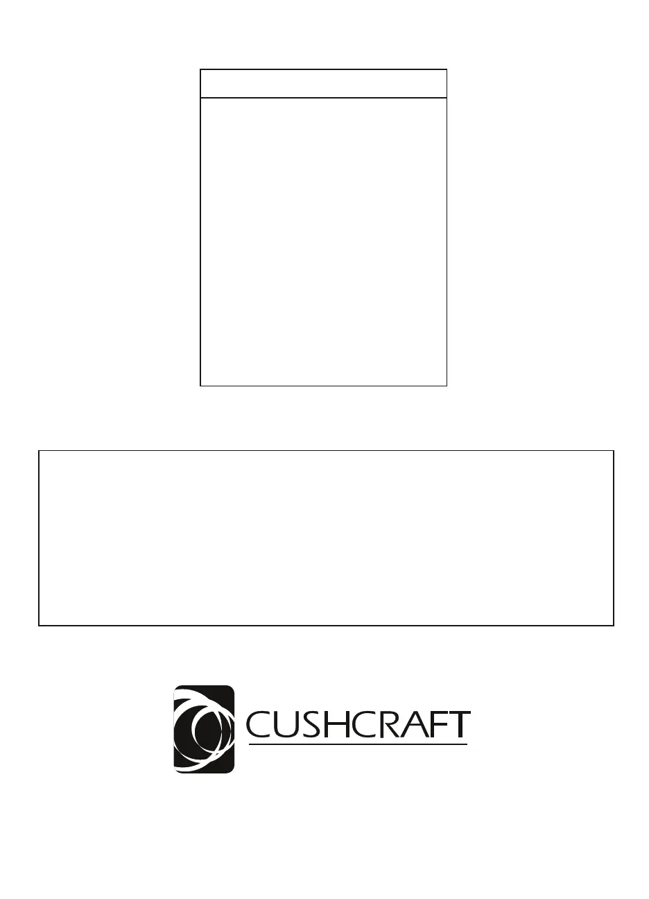 TELEPHONE: 603-627-7877 • FAX: 603-627-1764 • E-mail: techsup@cushcraft.com