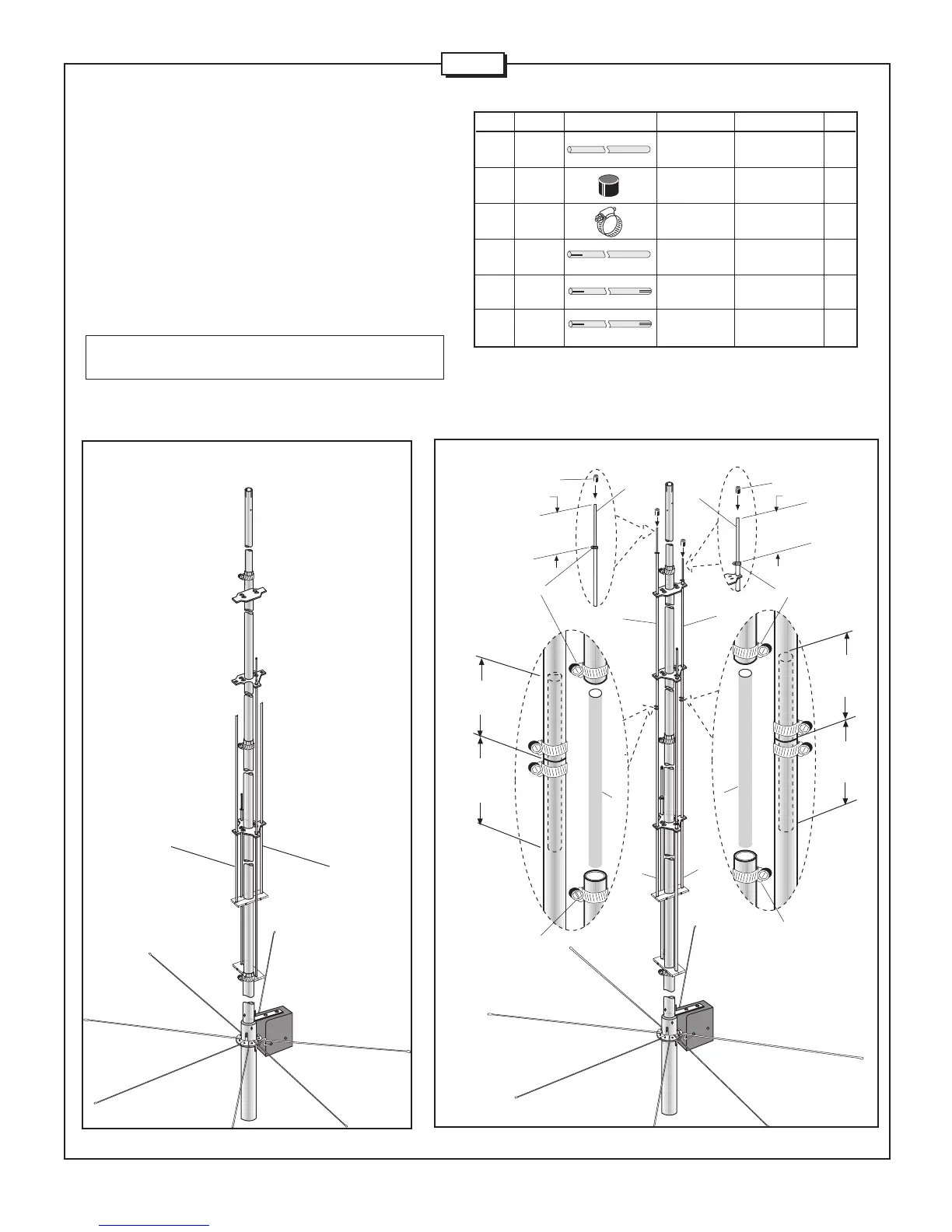 6"rods (SB) in (SF) tubes and place the worm clamps (407) as