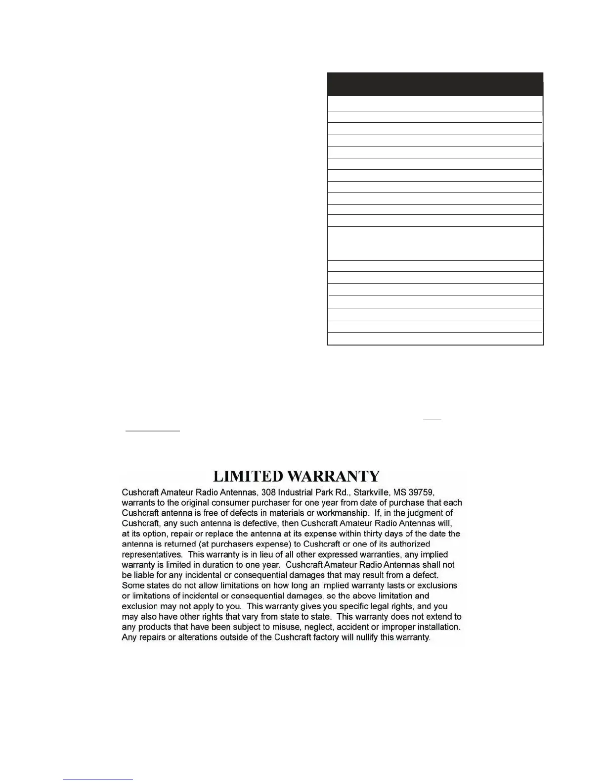 TheElectricalSpecificationsforallCushcraft Amateur Antennasarederivedfromnumerical