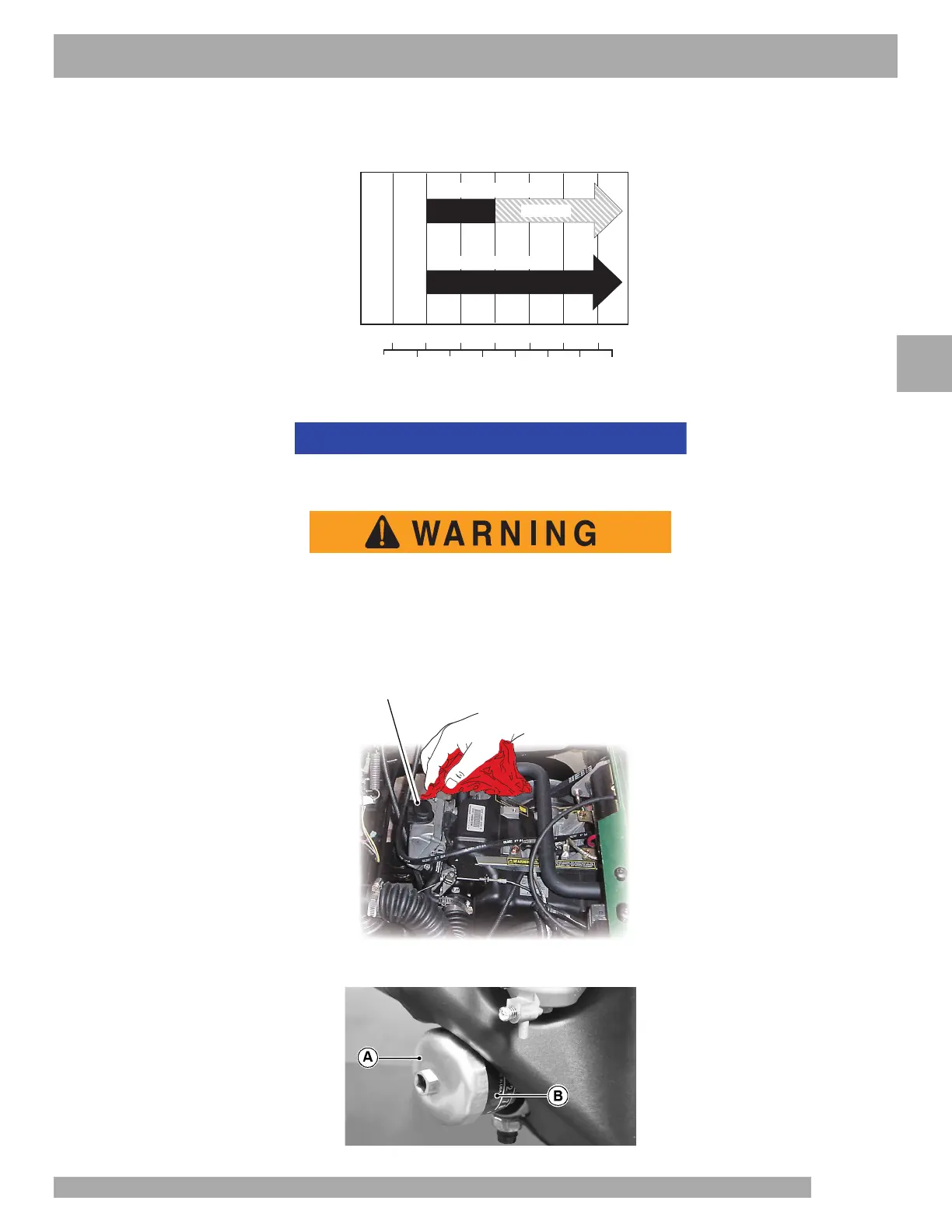Be aware that engine fluids may be hot and contact to the skin may cause severe burns. Wear