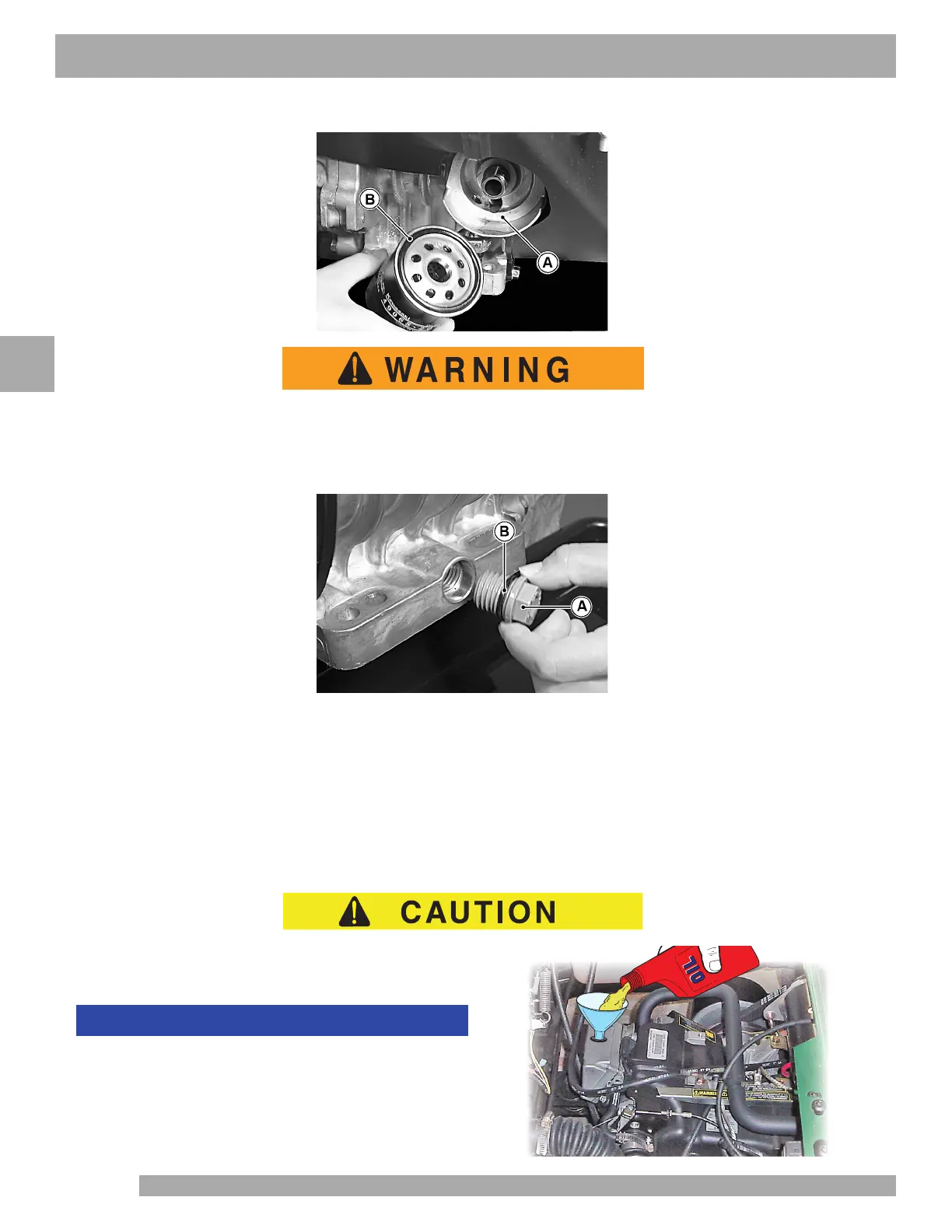 filter 2/3 to 3/4 rotations by HAND(S). Pour in the specified type and amount of oil See "Capacity and Replacement