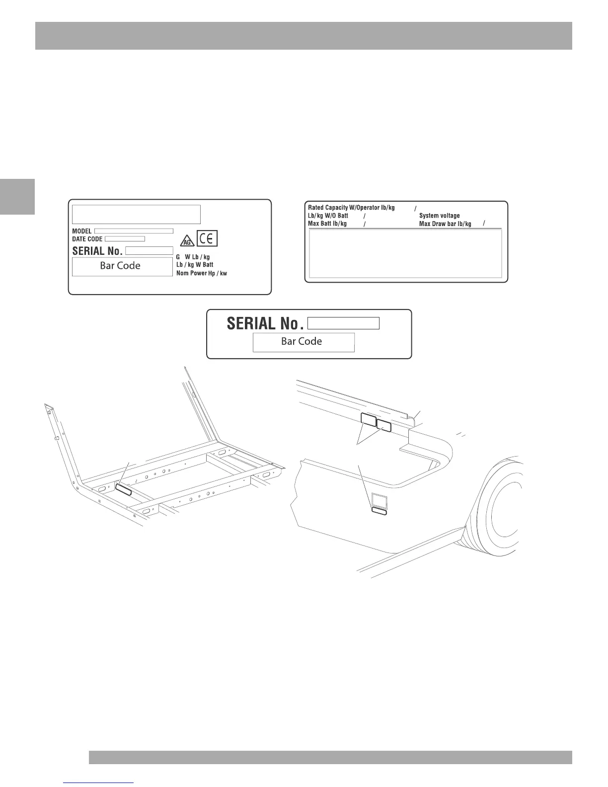 Two serial number and manufacture date code plates are on the vehicle. One (PART C) is placed on the body below