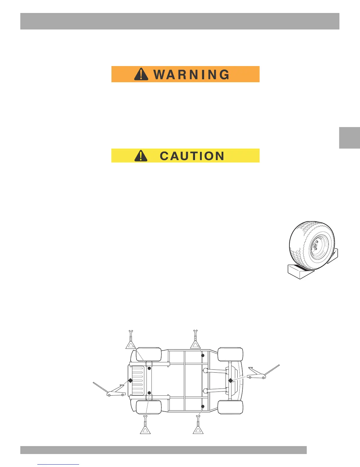 Some servicing operations may require the front wheels, the rear wheels, or the entire vehicle to be raised.