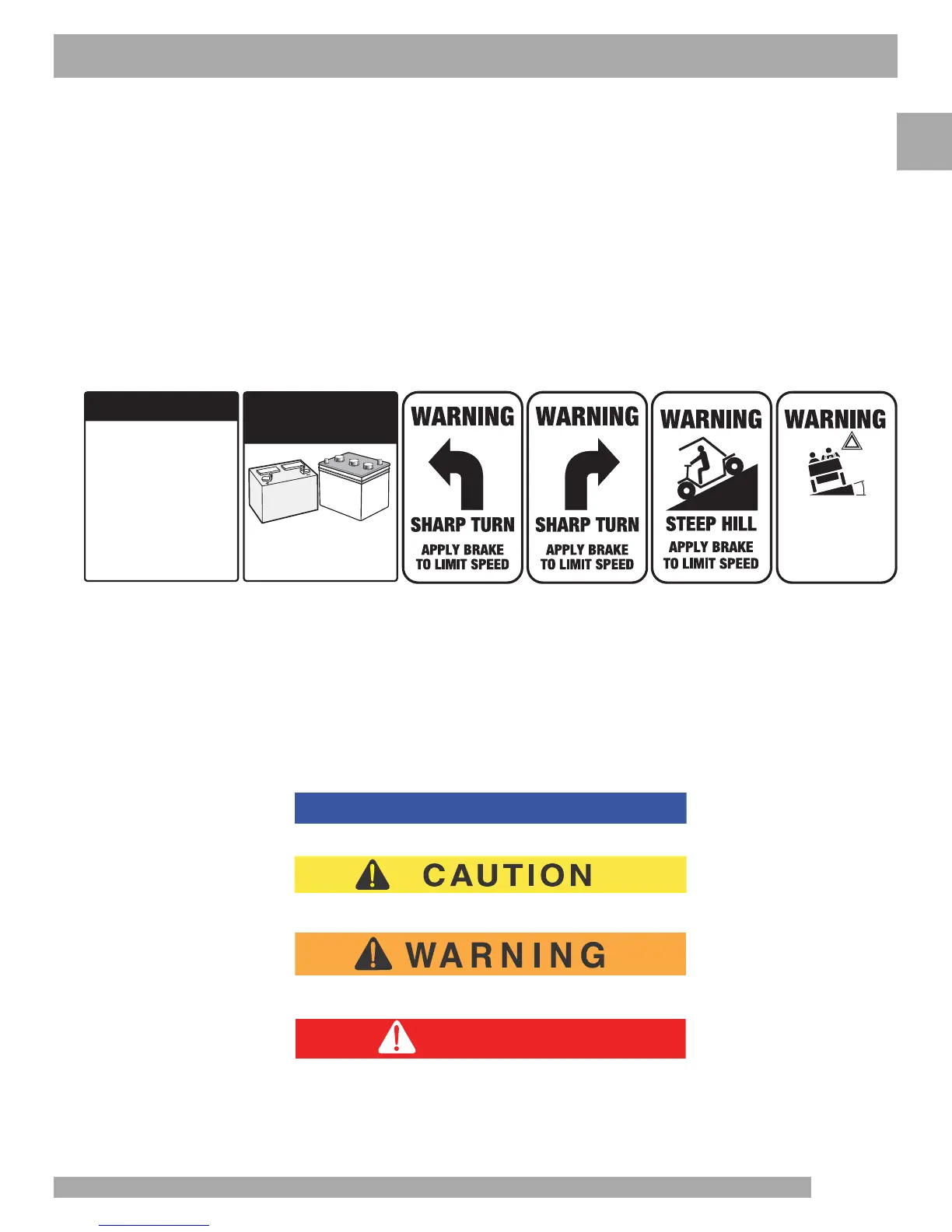 vehicle is to be used in a commercial environment, signs similar to the ones illustrated should be used to warn of sit-
