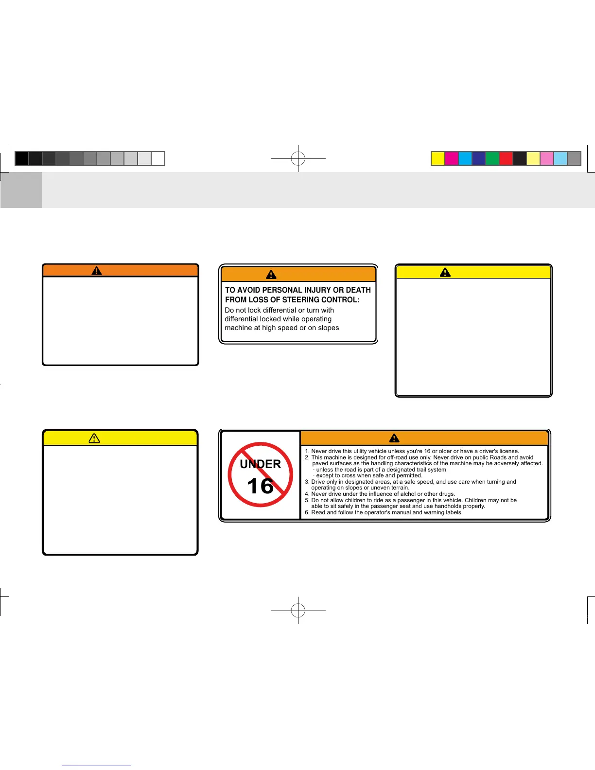 1. Never drive this utility vehicle unless you're 16 or older or have a driver's license.
