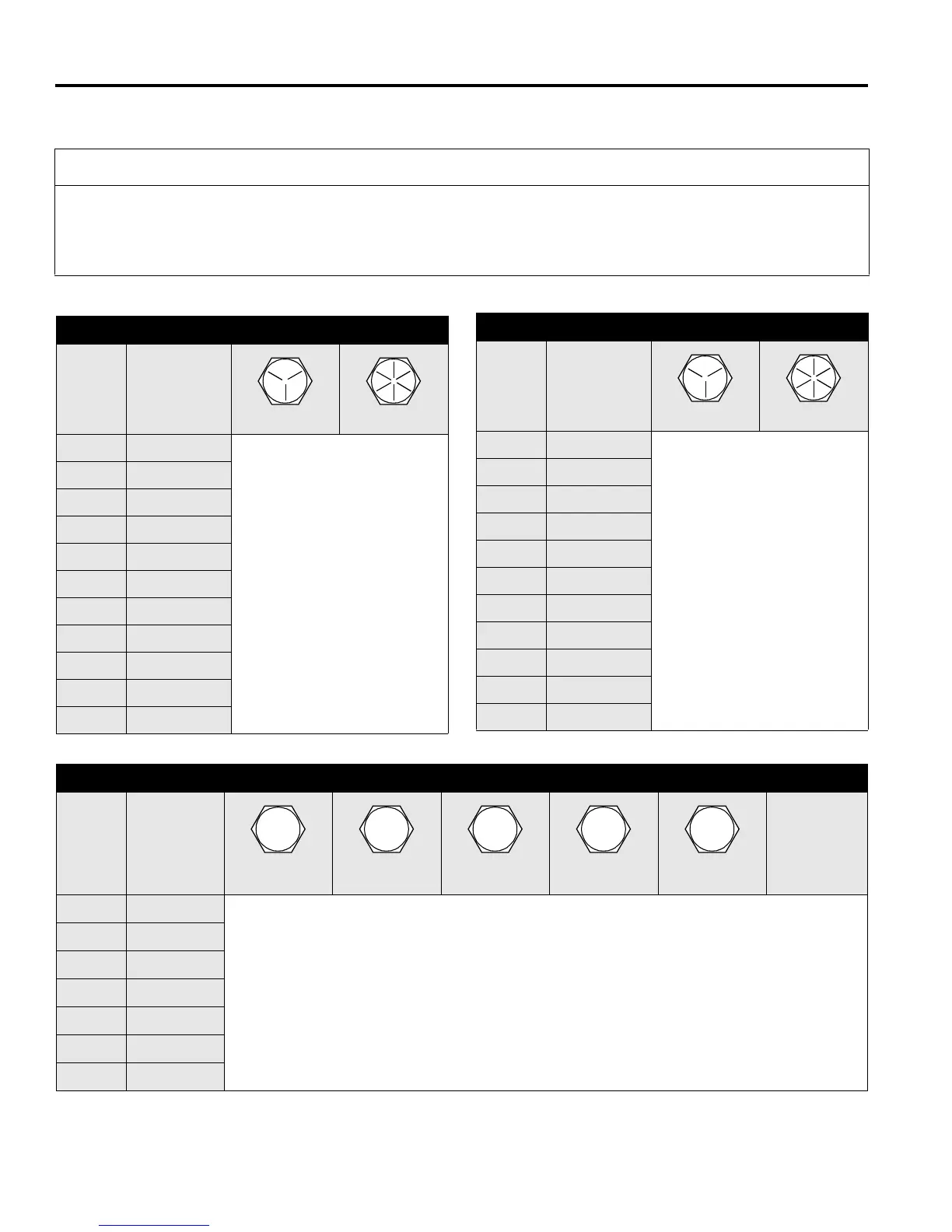 Alle drejningsmomentværdier i disse skemaer er cirkaværdier og er kun tænkt som reference. Brug af disse