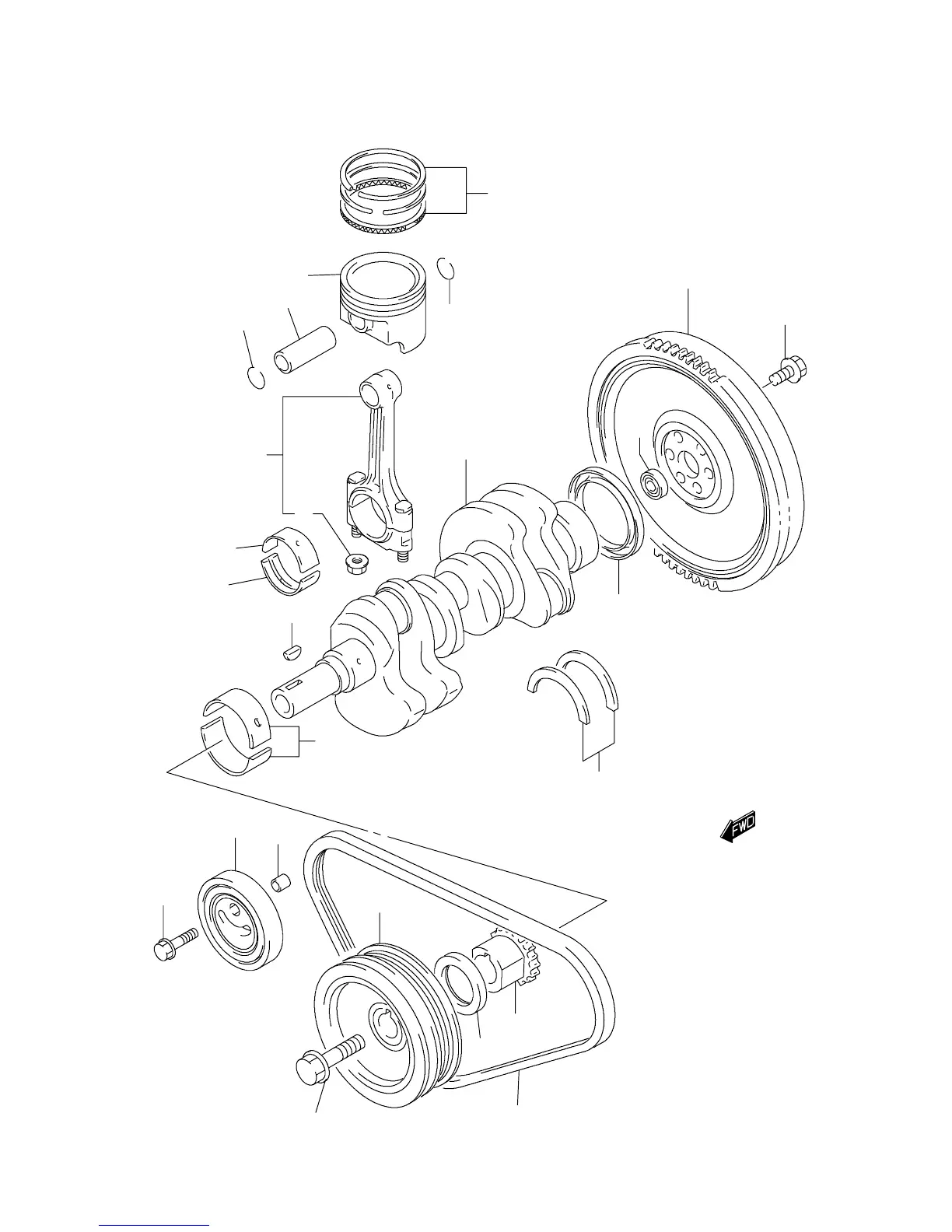 CRANKSHAFT, FLYWHEEL and PISTONS (SUZUKI K6A)