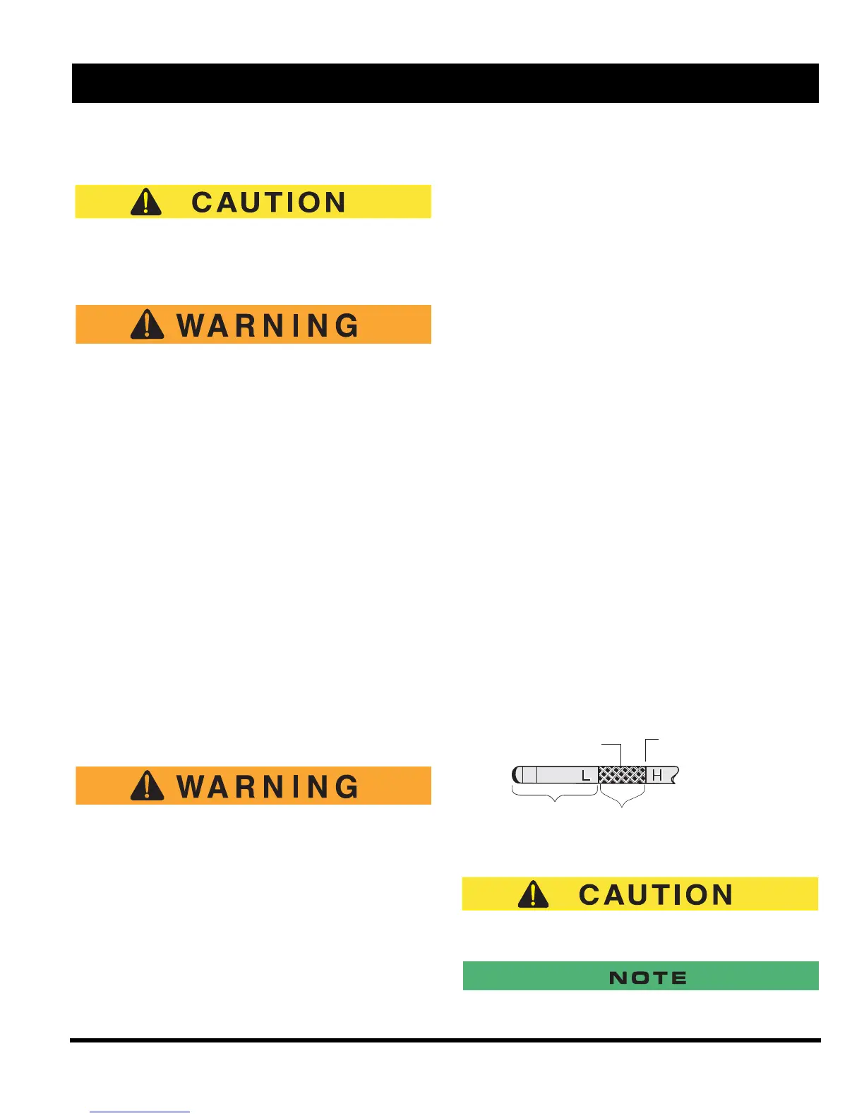 (Ref Fig. 19 on page 15). Add oil if the le vel on the dip-
