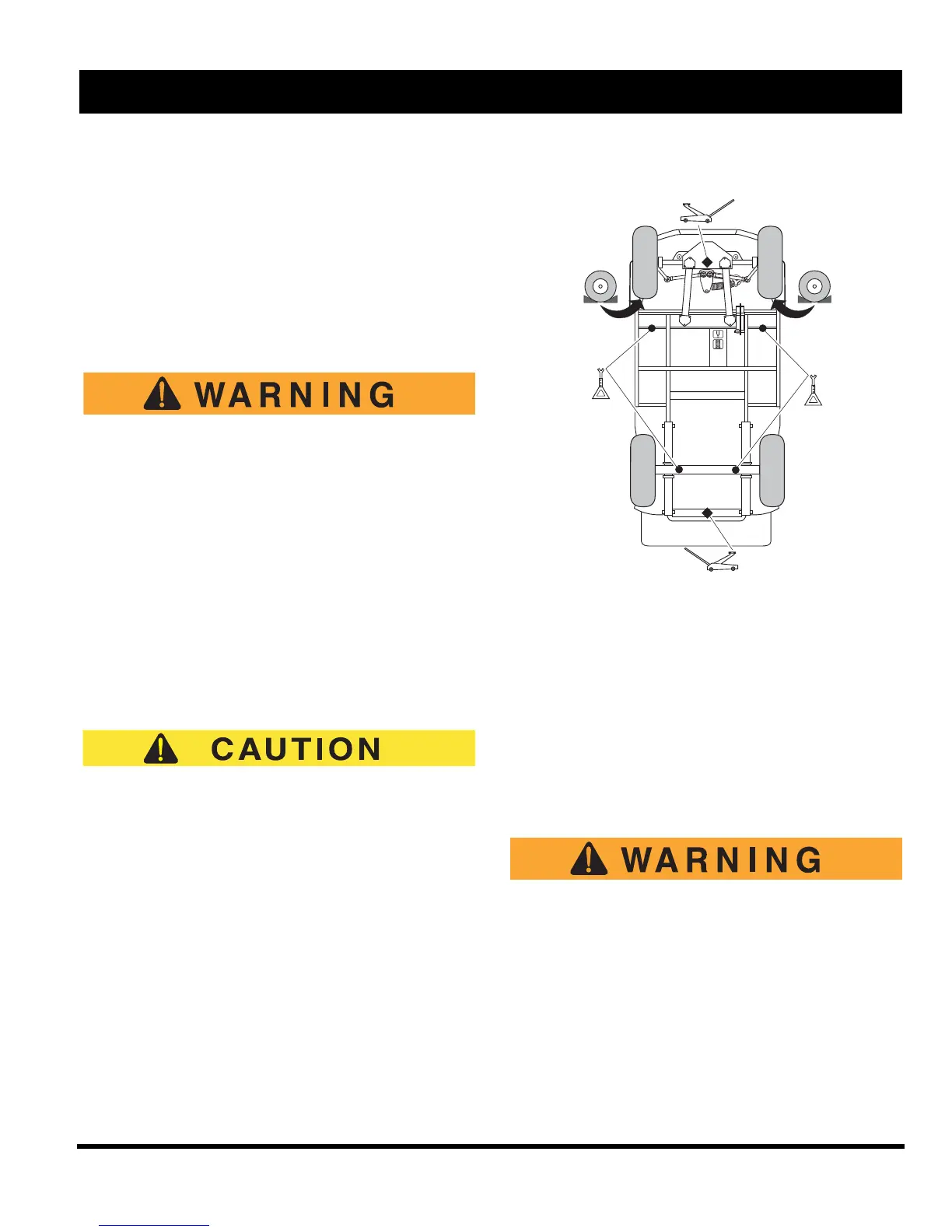Never get under a vehicle while it is sup-