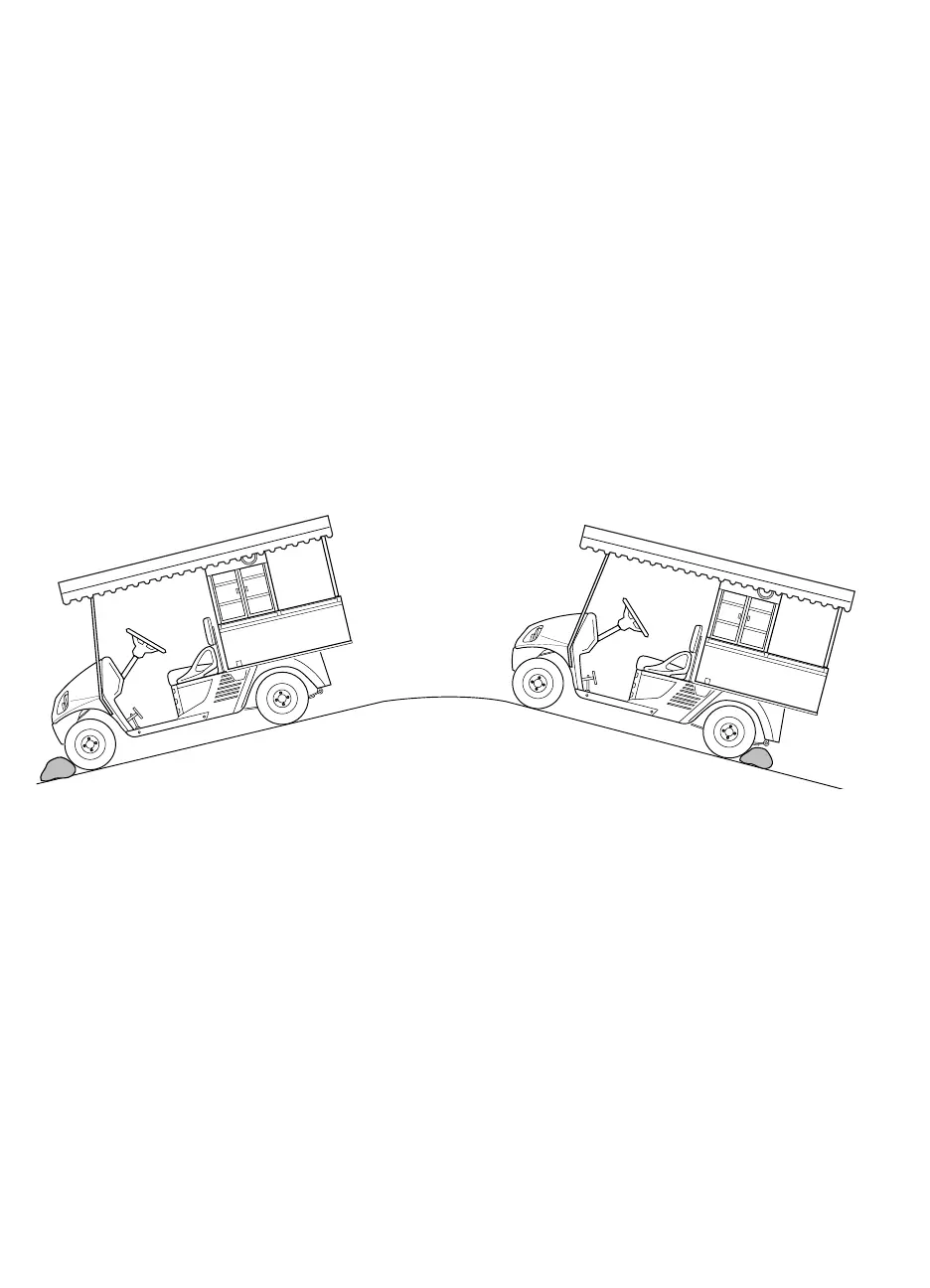 5. If parking on an incline, chock the wheels on the downhill end as shown in the following illustration.