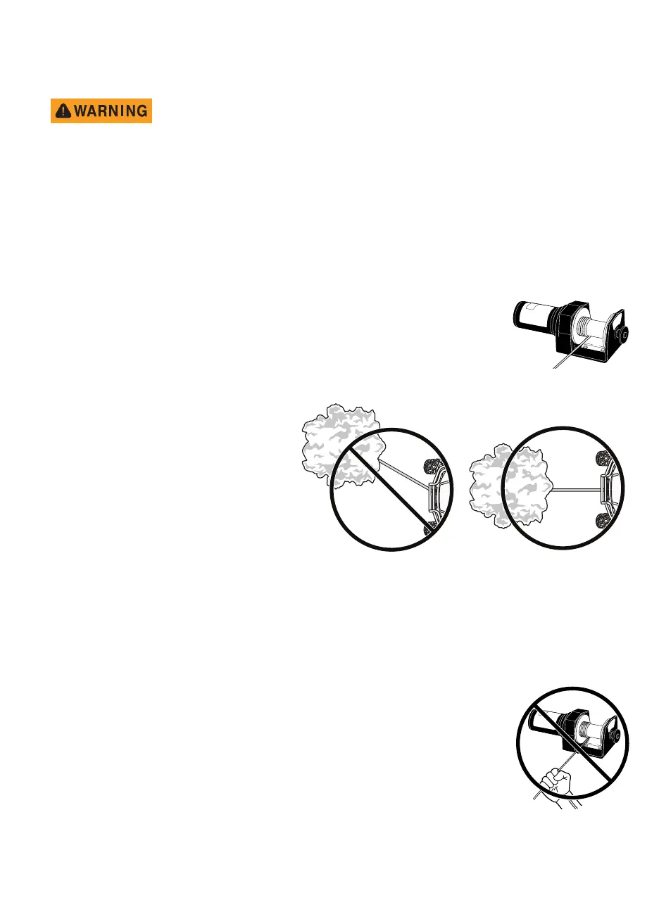 • Be observant of the winch drum. Do not