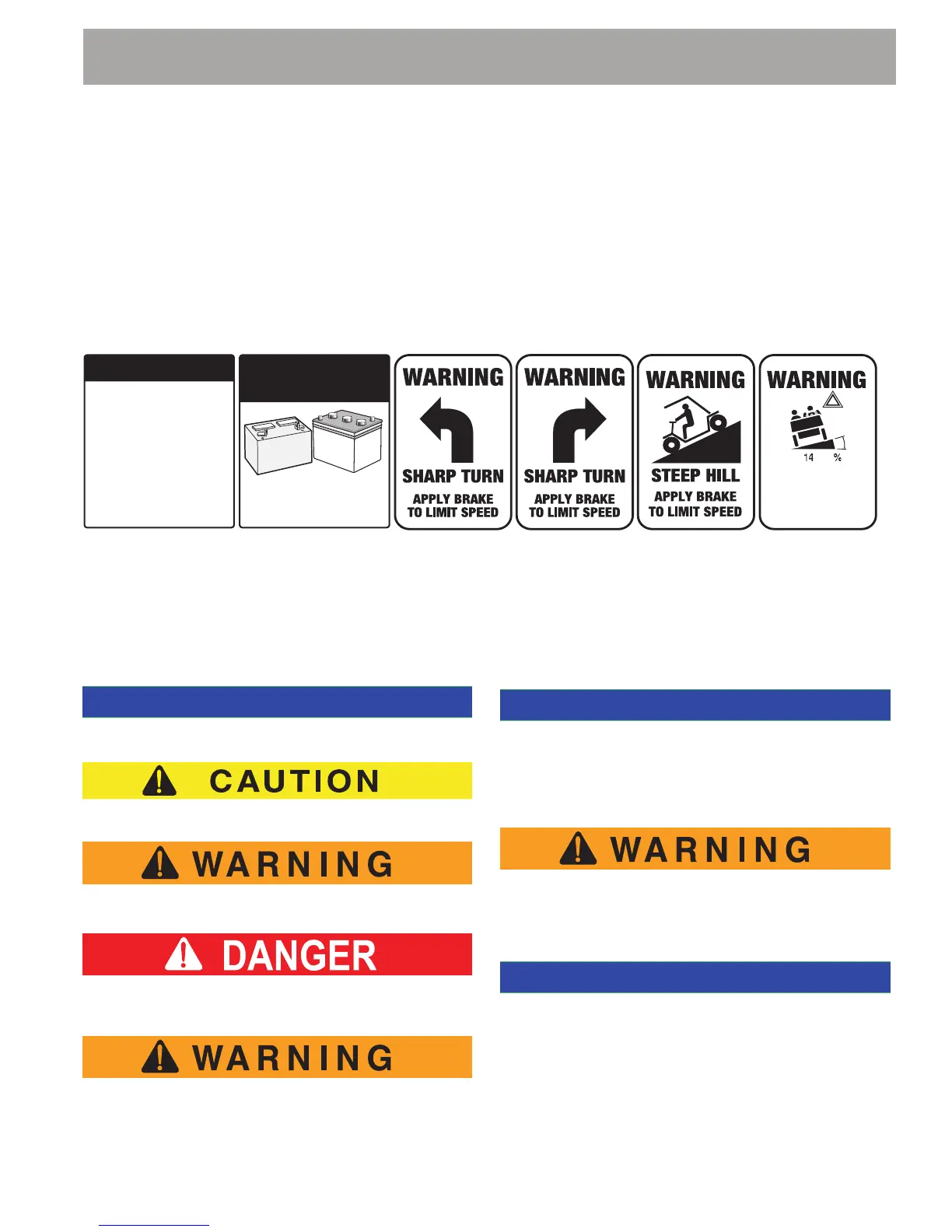 Read and understand all labels located on the vehicle. Always replace any damaged or missing labels.