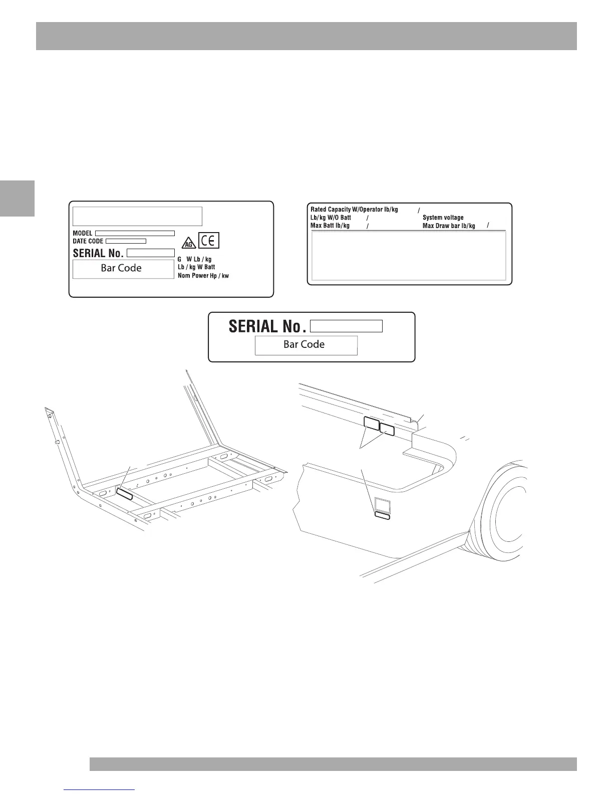 Two serial number and manufacture date code plates are on the vehicle. One (PART C) is placed on the body below