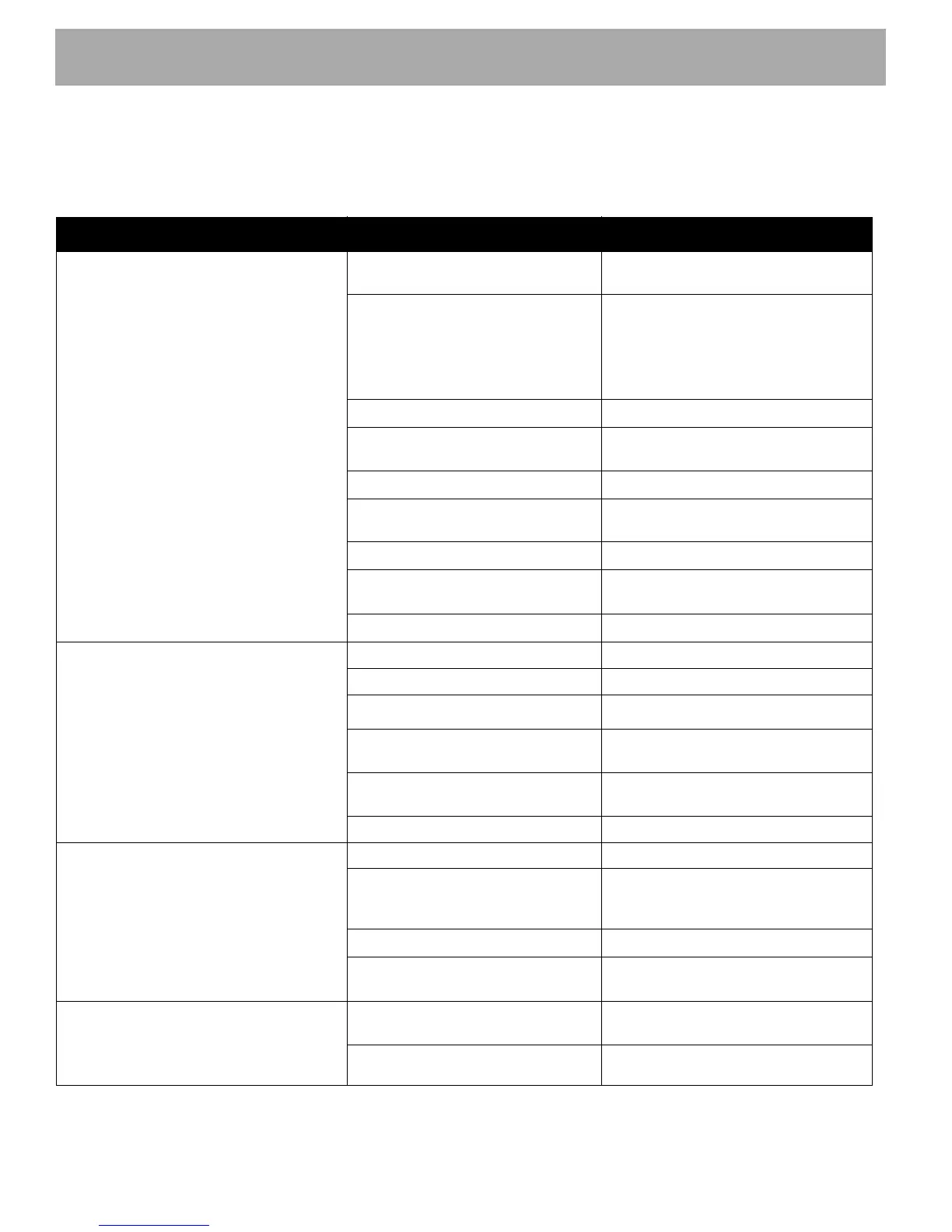 TROUBLESHOOTING TABLE