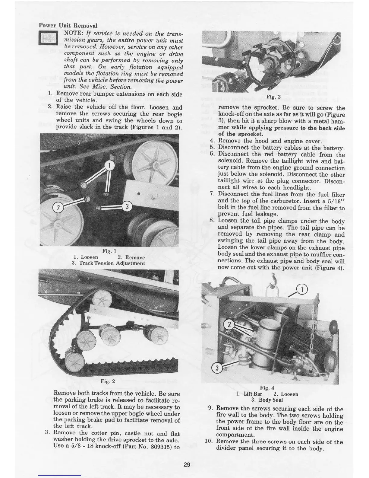 Cushman Trackster - POWER UNIT REMOVAL; Track and Sprocket Removal