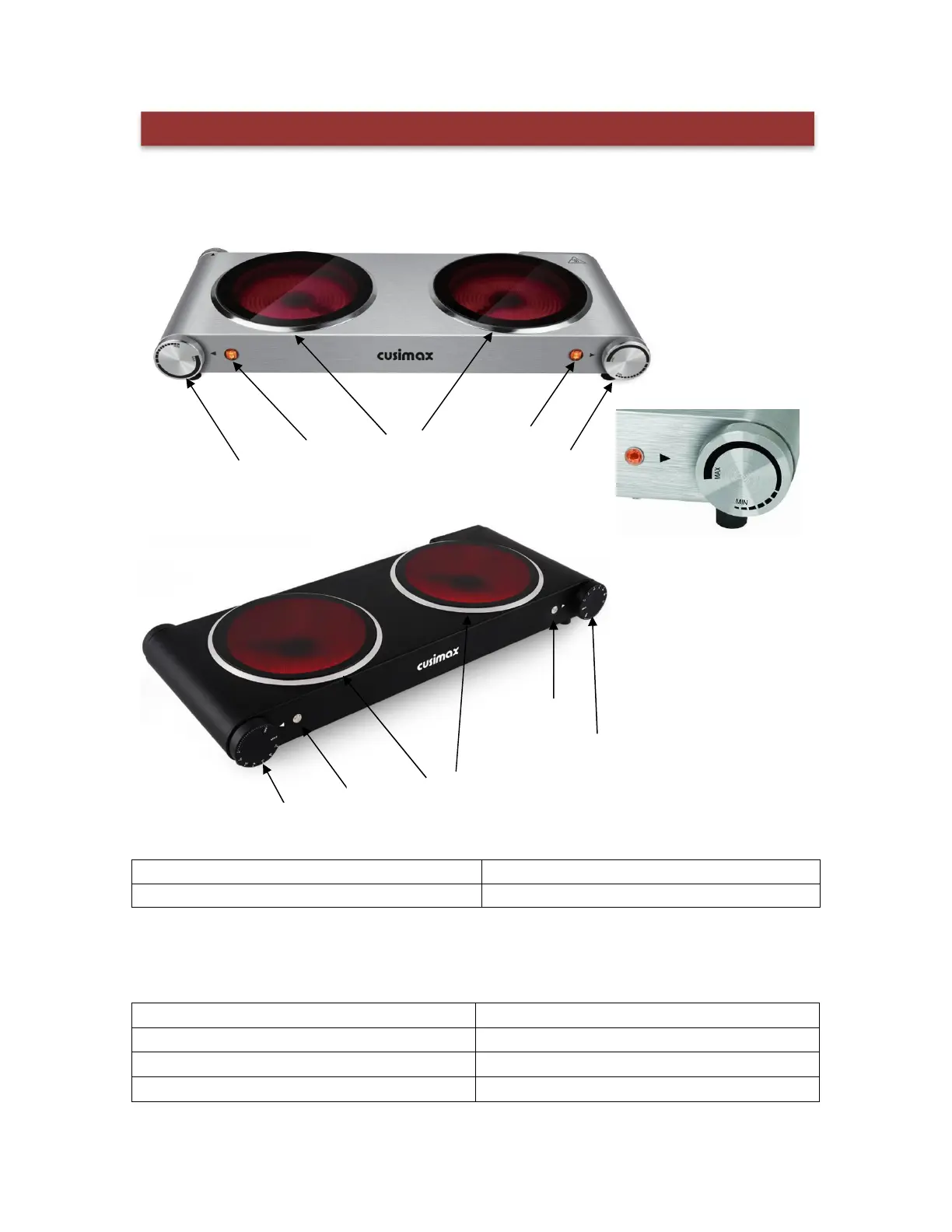 Cusimax CMIP-B180 - Getting to Know Your Infrared Cooktop; Product Specifications