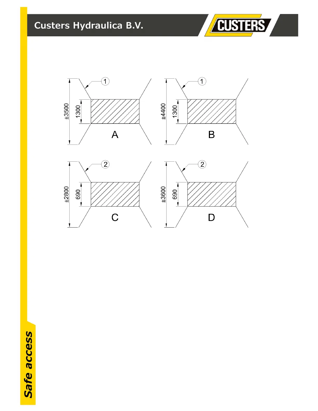 C: Small outrigger, length 1300 mm D: large outrigger, length 2000 mm