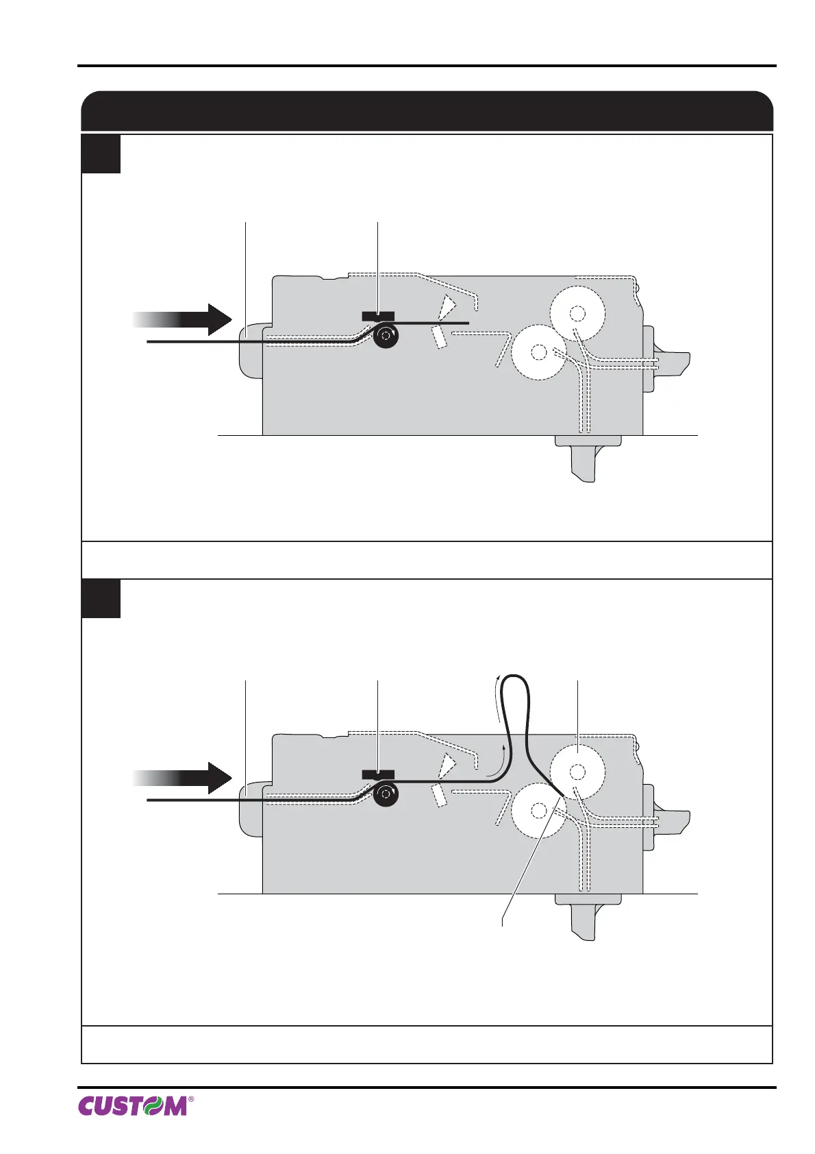 The ticket advances ahead to the ejector and is caught between the ejector rollers.