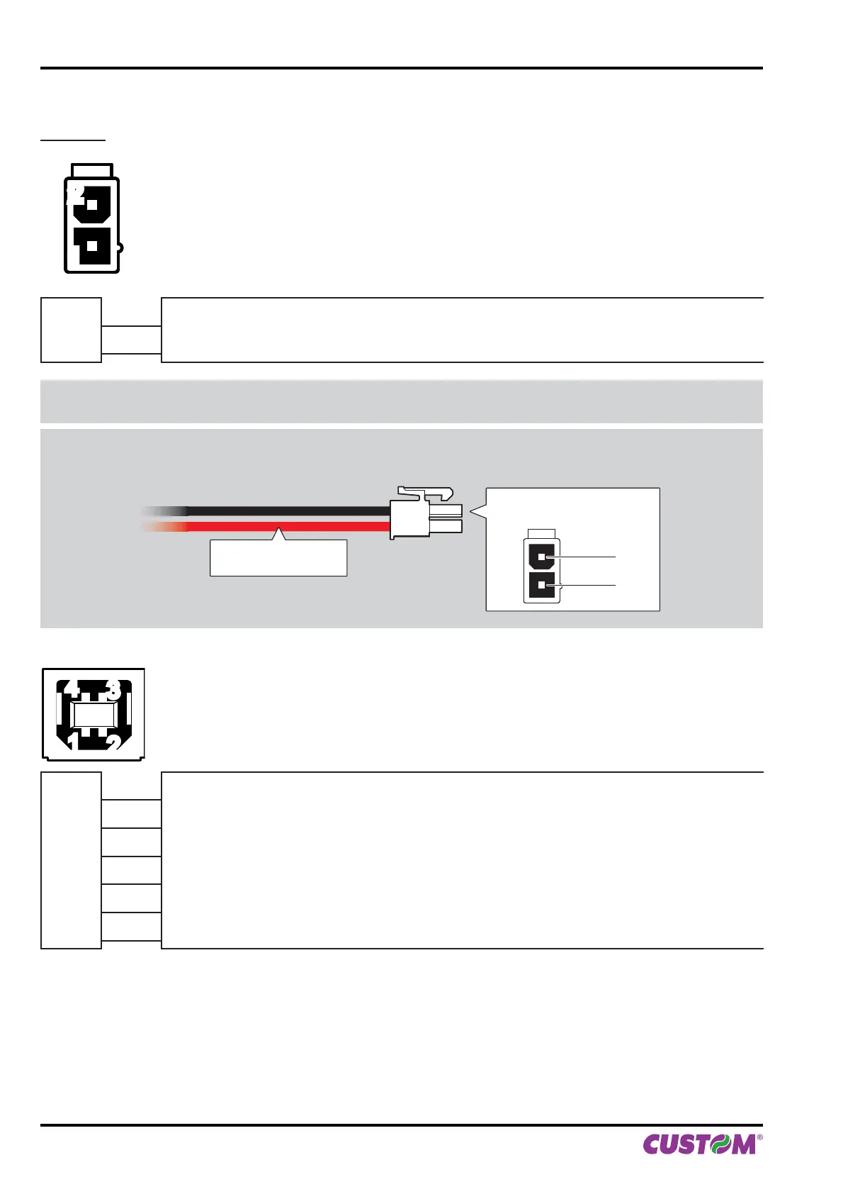 The following fi gures show the connector pinout of the power supply cable for the device: