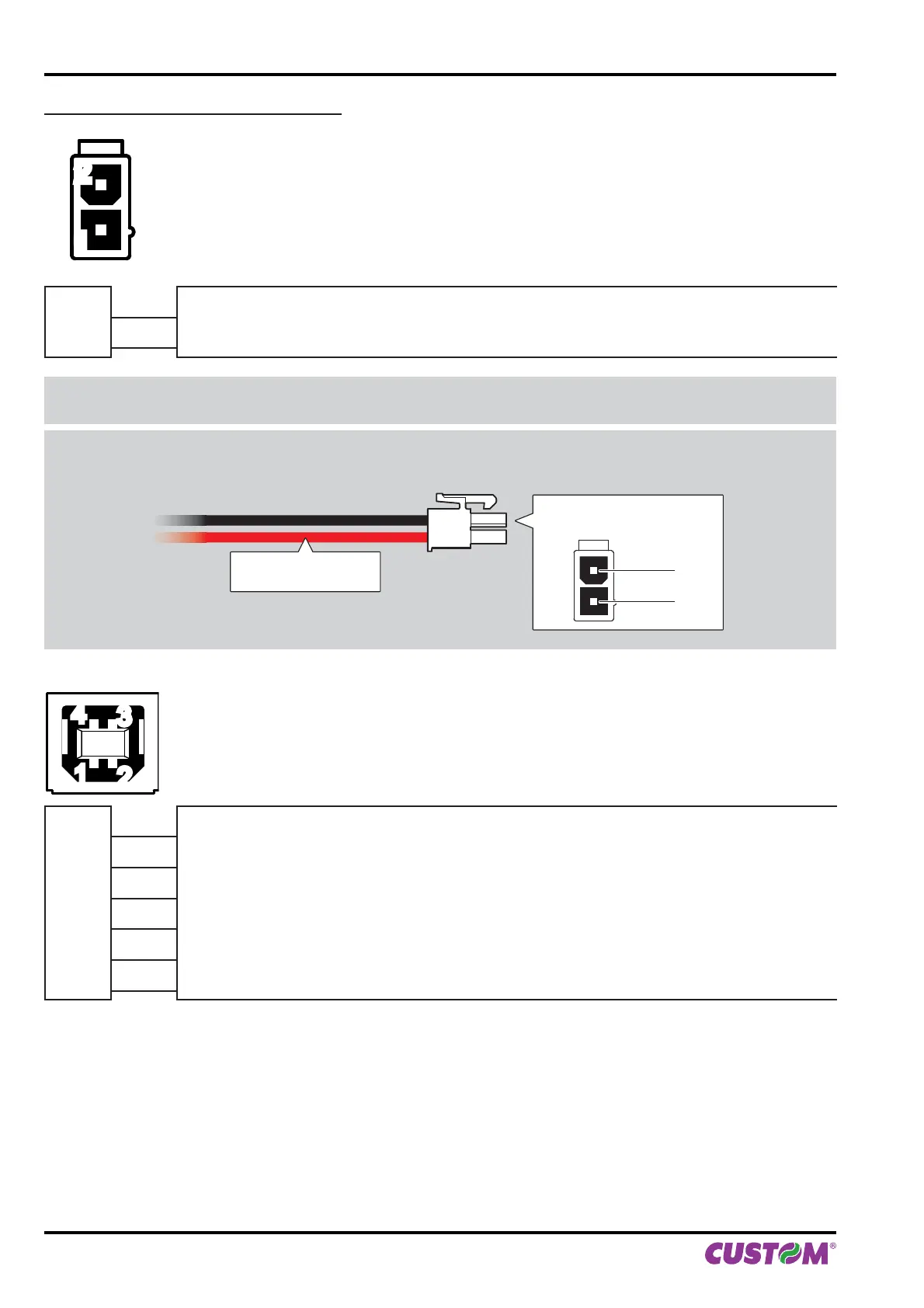 The following fi gures show the connector pinout of the power supply cable for the device: