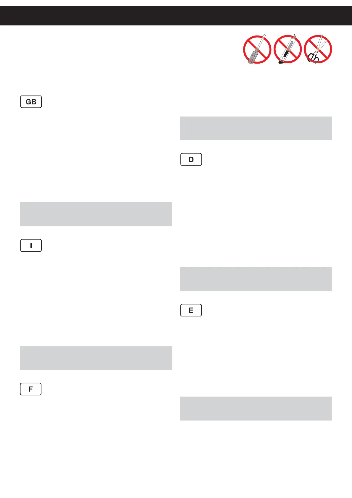 te con nessun tipo di strumento, come forbici, cacciaviti, cutter,