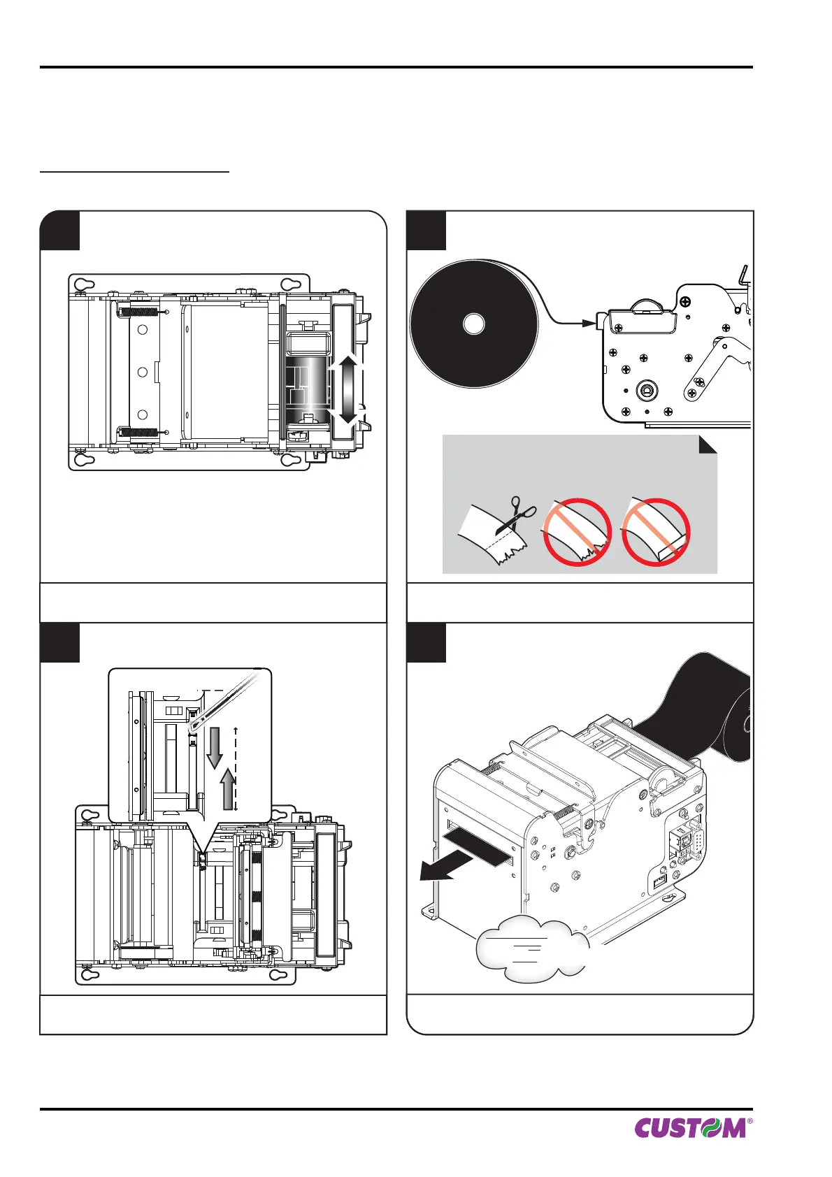 Each time you change the paper, check inside the printer. To change the paper roll proceed as follows: