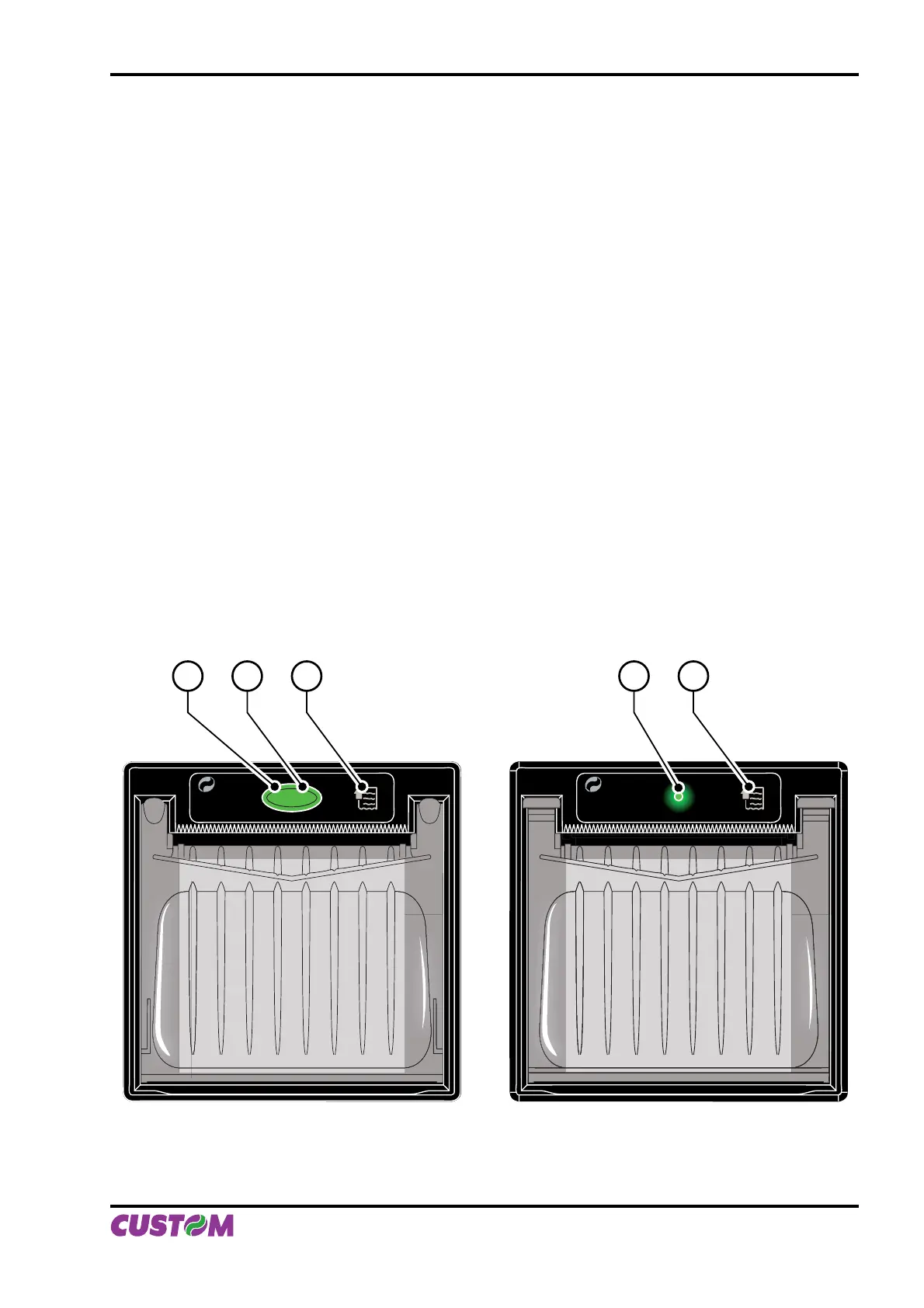 The control panel is located on the front (see fi g.2) and has a FEED key (3) and an OPEN key (1) for paper