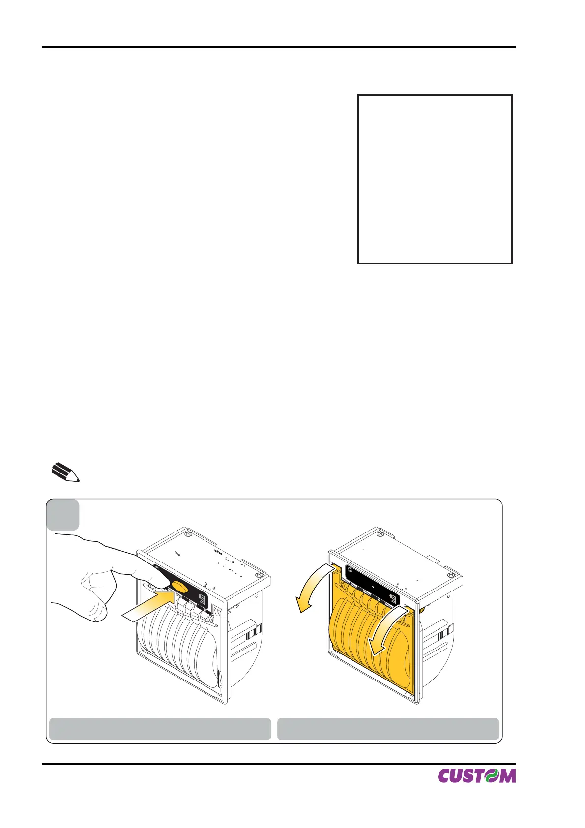 Open the paper roll compartment by pressing the OPEN key (see fi g.1.16) or using the two opening 1.